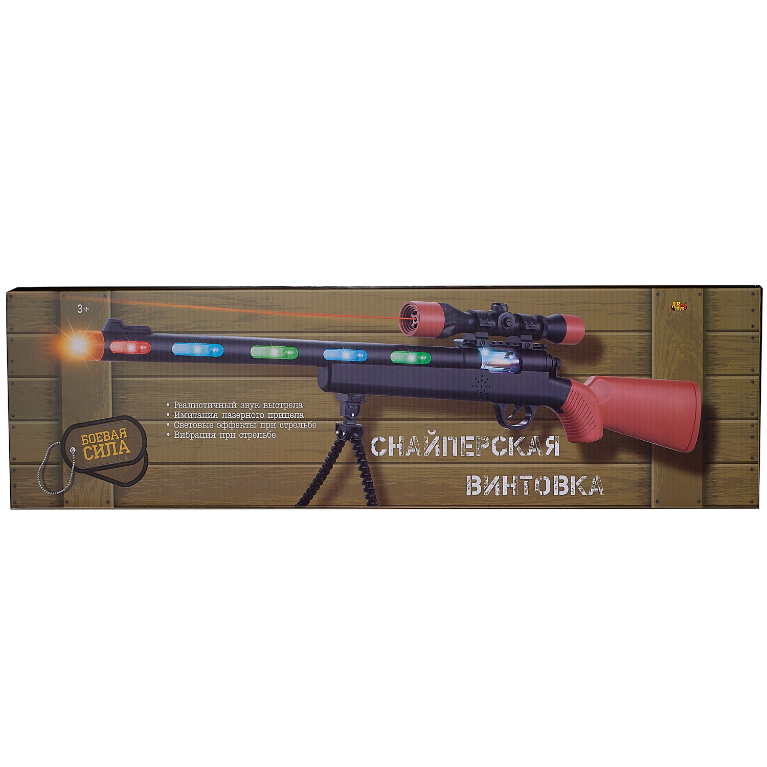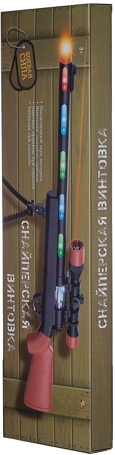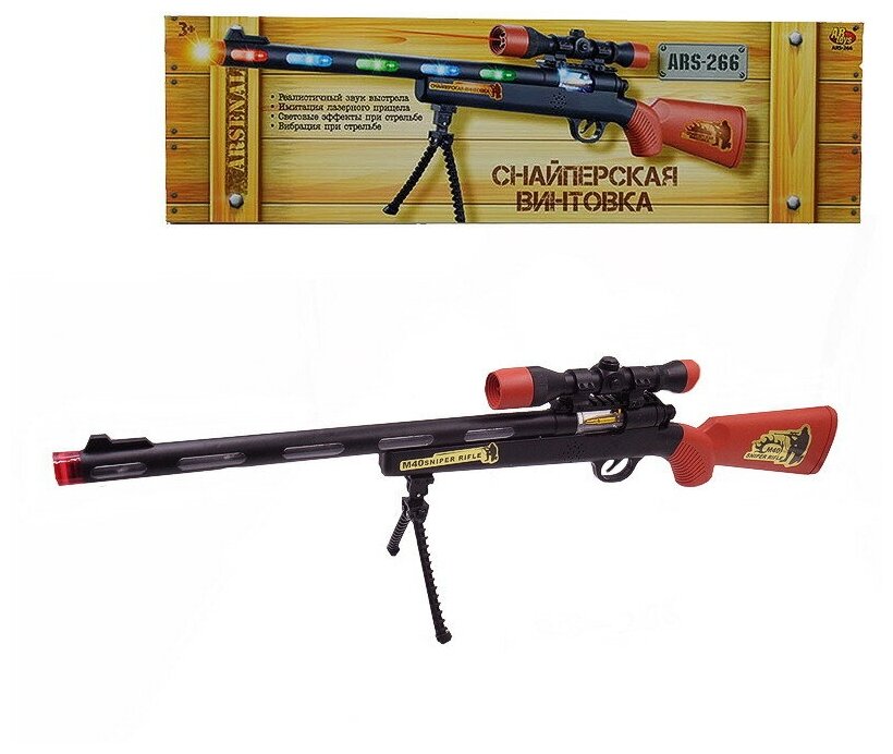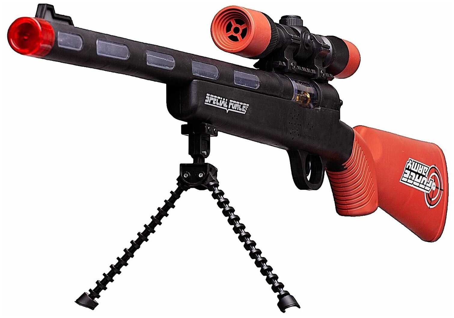 Оружие детское, электромеханическое Арсенал. Снайперская винтовка с лазером и подставкой. Реалистичный звук выстрела, световые эффекты при стрельбе, вибрация при стрельбе, световые и звуковые эффекты.