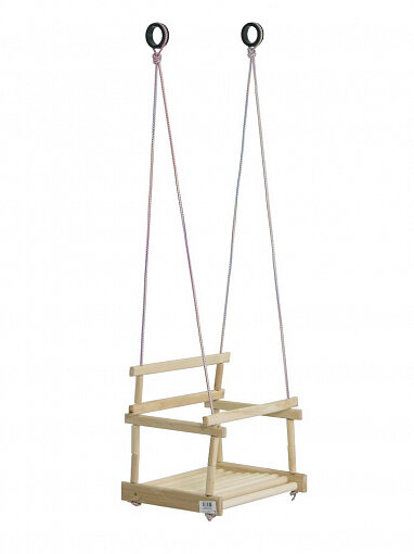 Детские качели любимое развлечение малышей. Подвесные качели Фея имеют деревянное сидение, подвижный ограничитель, надежный высокопрочный шнур, металлические кольца.