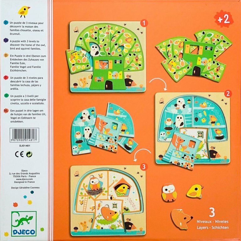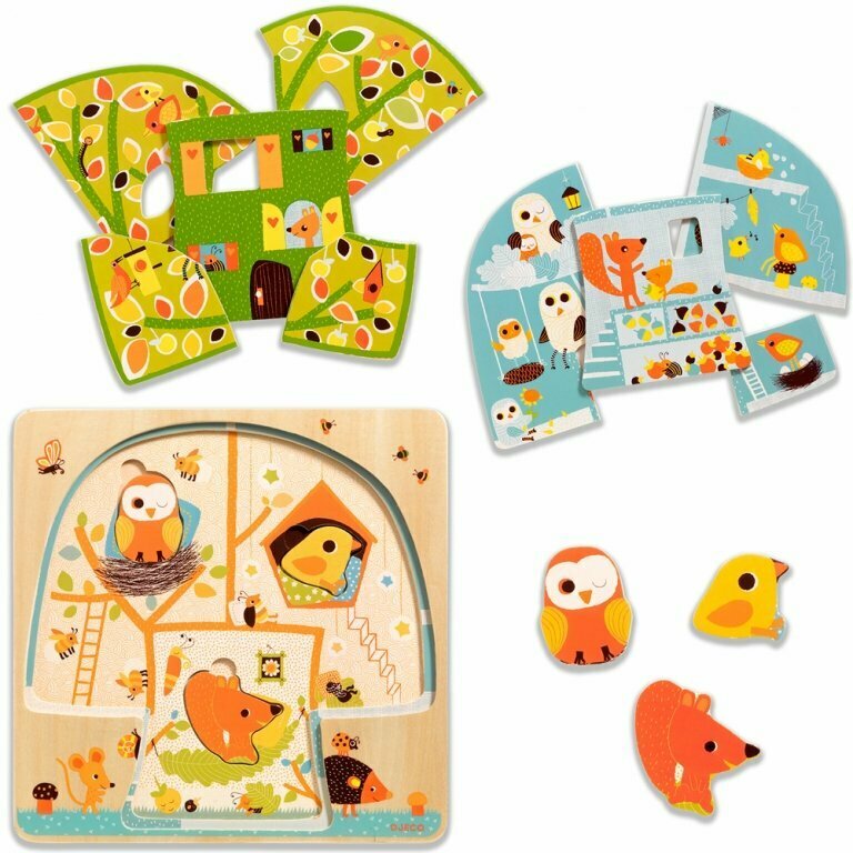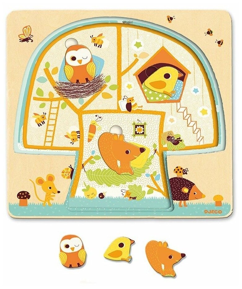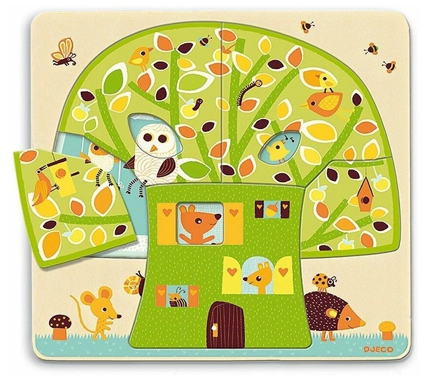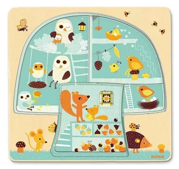 - Деревянный трёхслойный пазл Кто на дереве живет? Djeco (DJ01481)