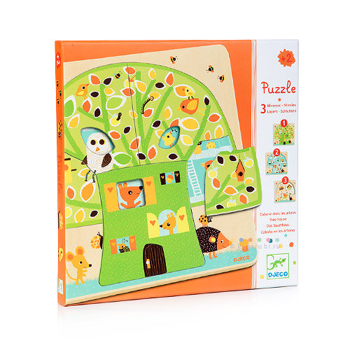- Деревянный трехслойный пазл Дом дерево Djeco 01481
