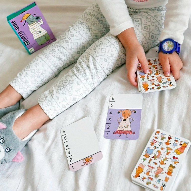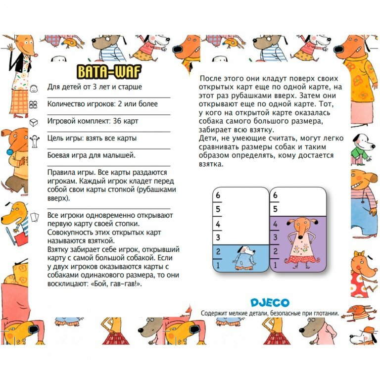 | Состав набора | 36 карт с изображениями собак и линейкой с цифрами. |