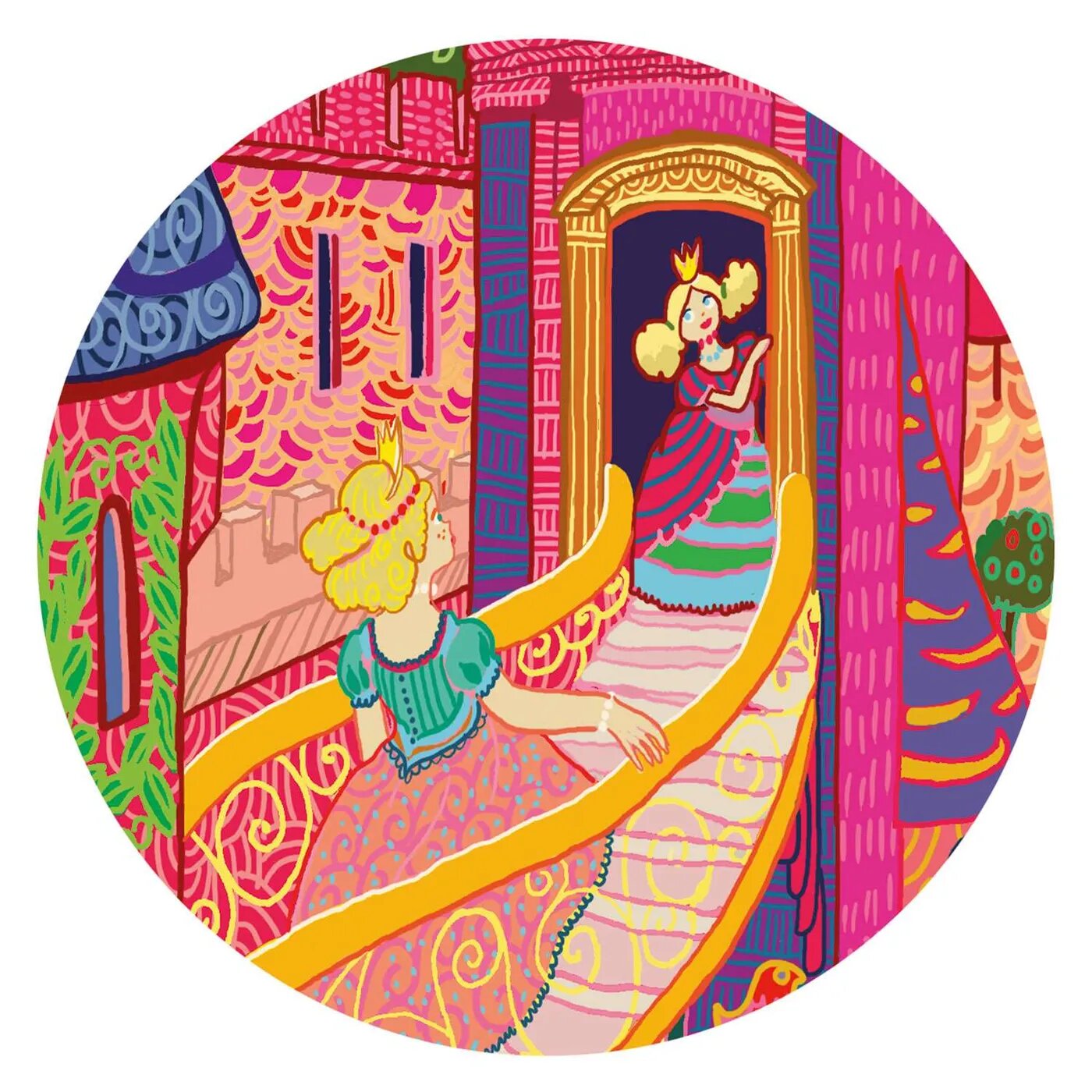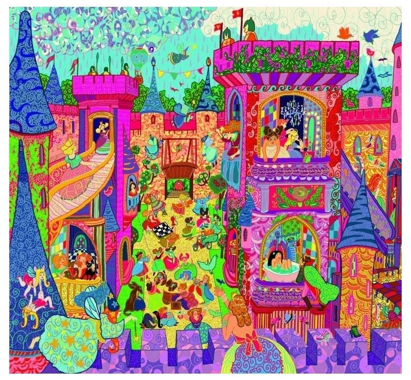 По картинке необходимо собрать целое изображение из 54 деталей разной формы. Подбирая необходимые пазлы по цветам и изображенным деталям, дети учатся мыслить логически, развивается память и внимание. Используя в игре маленькие предметы, ребенок тренирует мелкую моторику пальцев рук. На картинке очень много ярких маленьких деталей. Шумный праздничный город, в котором проживает много персонажей- принцессы и принцы, феи и эльфы и многие другие, у каждого своя комната в замке и своя история. Когда пазл будет собран, ребенок увидит картину реальной жизни в мифическом городе. Фантазируя, он может описать ее и придумать сюжет дальнейшего развития.