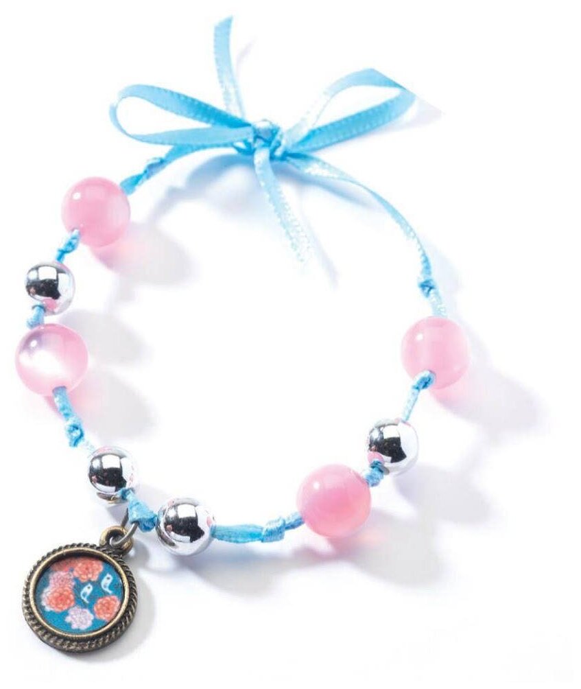 - В комплекте: 4 баночки с разноцветными бусинами, катушка с разноцветными резинками и лентами, медальон с цепочкой, другие аксессуары, инструкция.