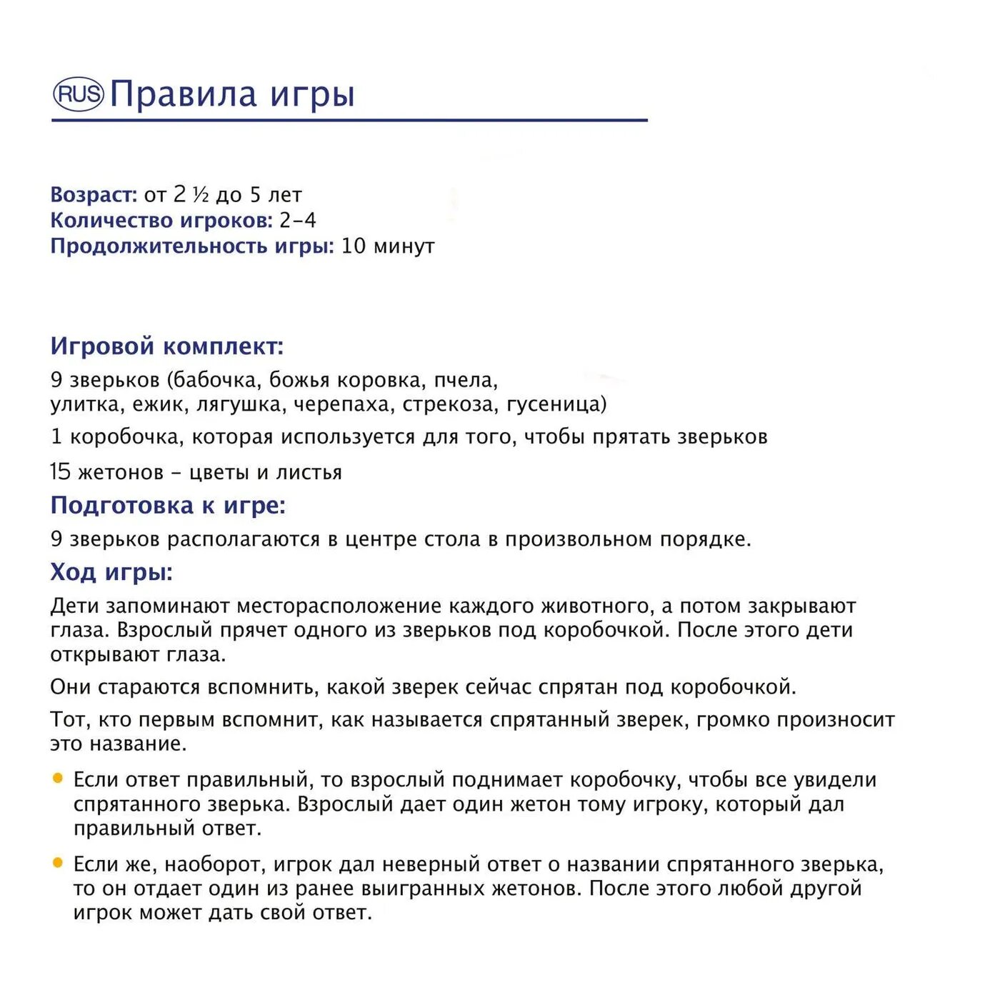 | Комплектация | 9 животных, коробочка для того, чтобы прятать фигурки животных, 15 монеток, инструкция |