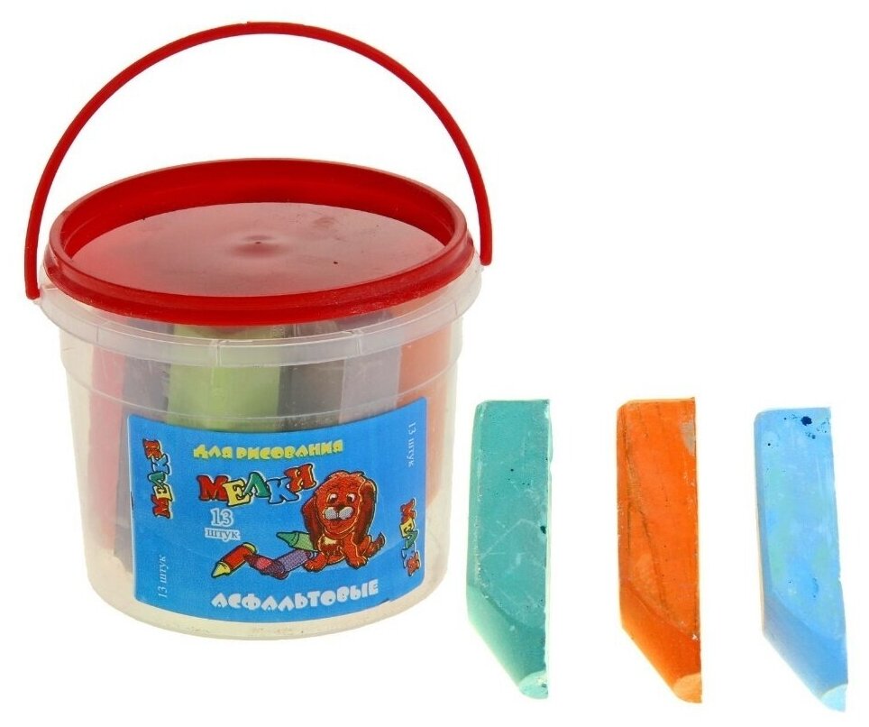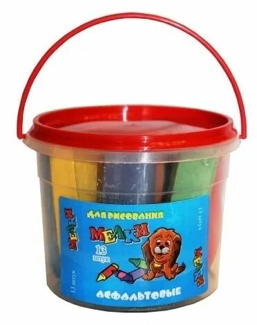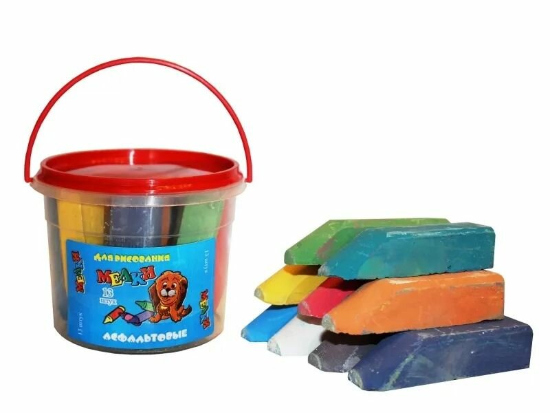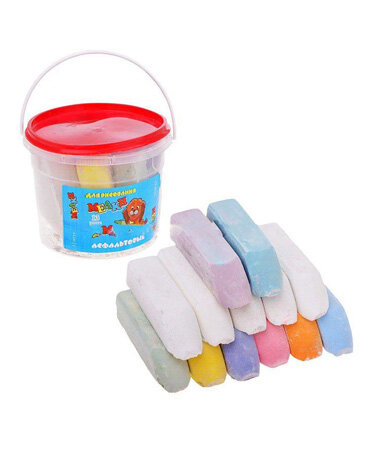 Мелки для рисования на асфальте. В наборе 13 цветов. Упакованы в удобное для хранение пластиковое ведерко.