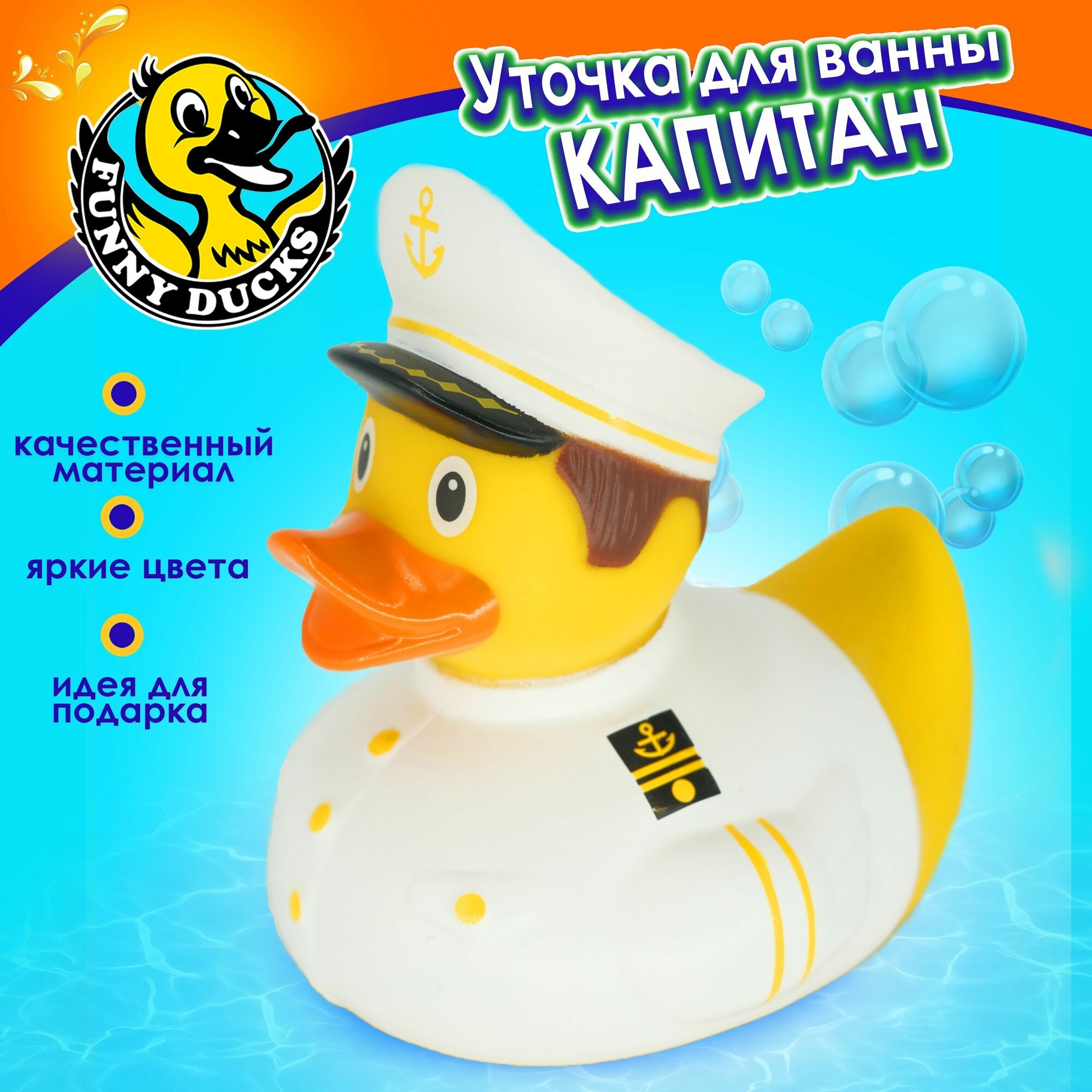Всемирно известная классическая игрушка для ванной.Изготовлена из безопасных нетоксичных материалов .Предназначена для игр в воде, на улице или дома.
