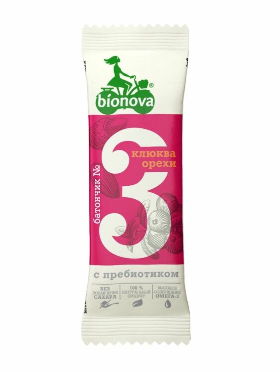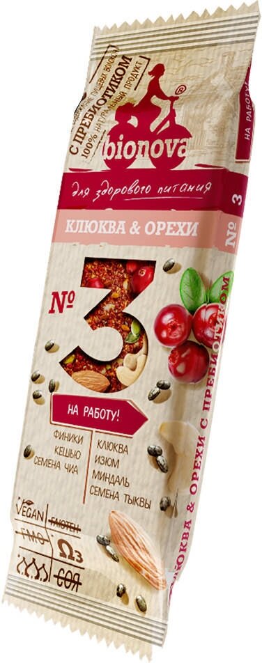 Батончик Bionova фруктово-ореховый с клюквой 35 г (3649)