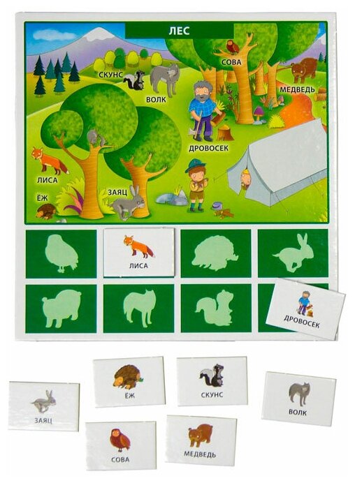 | Состав набора | 6 карт с тематическими сюжетами, 48 словарных карточек с рисунками, инструкция для родителей |