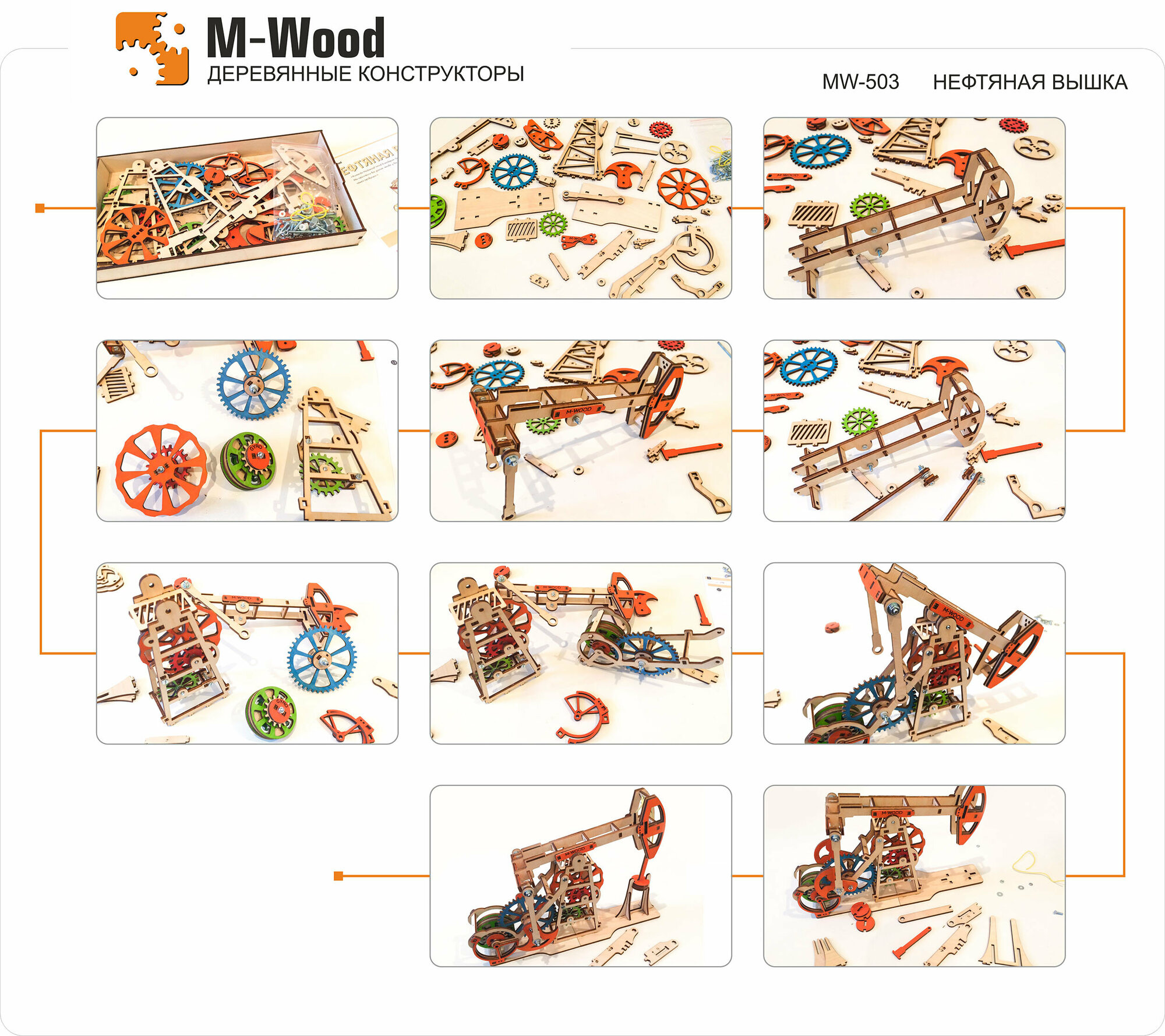Mechanical Wood - не просто деревянный конструктор, а целая механическая головоломка. Юный инженер пройдёт путь от изучения подробной трёхмерной инструкции до запуска собранного механизма. Конструктор развивает мышление, логику, креатив, даёт представление о принципах механики и кинематики.