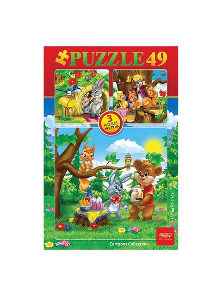 Пазлы Hatber 3 картинки в 1 коробке. Веселые друзья 49 элем. (49ПЗ5_12799)