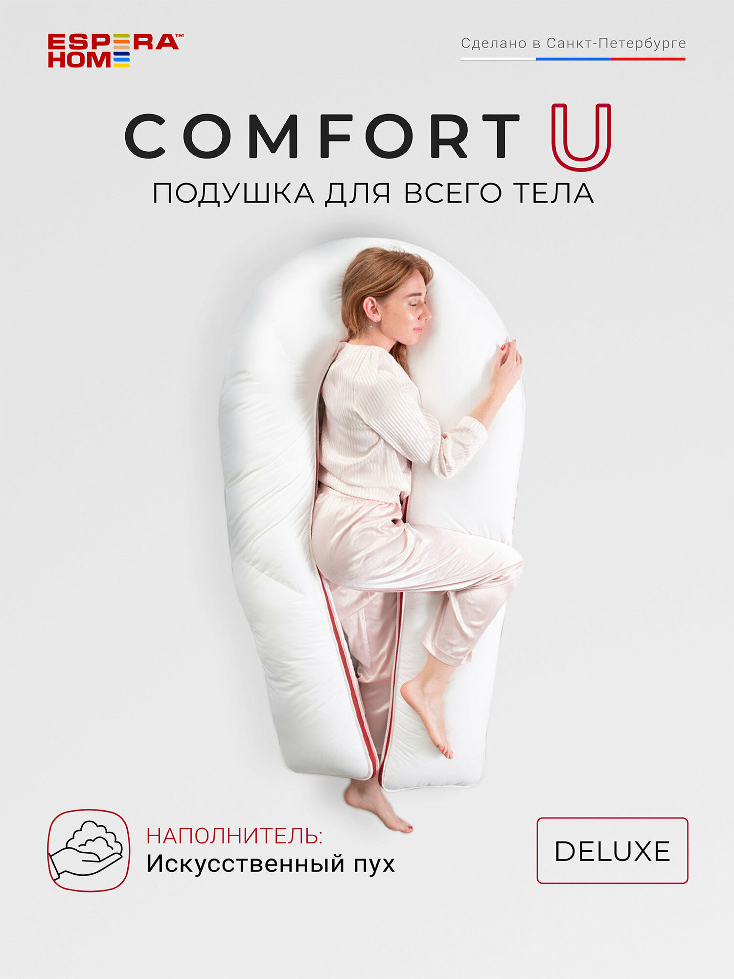 Подушка для всего тела «Comfort-U» создана для Вашего комфорта. Обнимая Вас с головы до ног и нежно поддерживая каждую часть Вашего тела, эта подушка подарит Вам настоящий полноценный отдых после тяжелого дня.