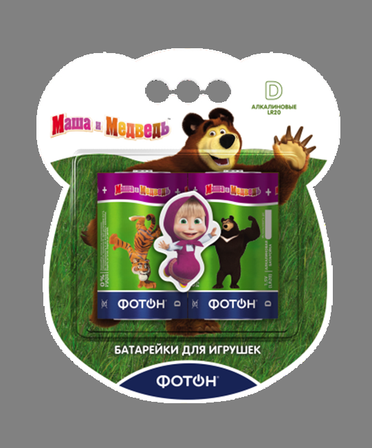 Батарейки Фотон LR20 ВP2 Маша и медведь + наклейка (22856)