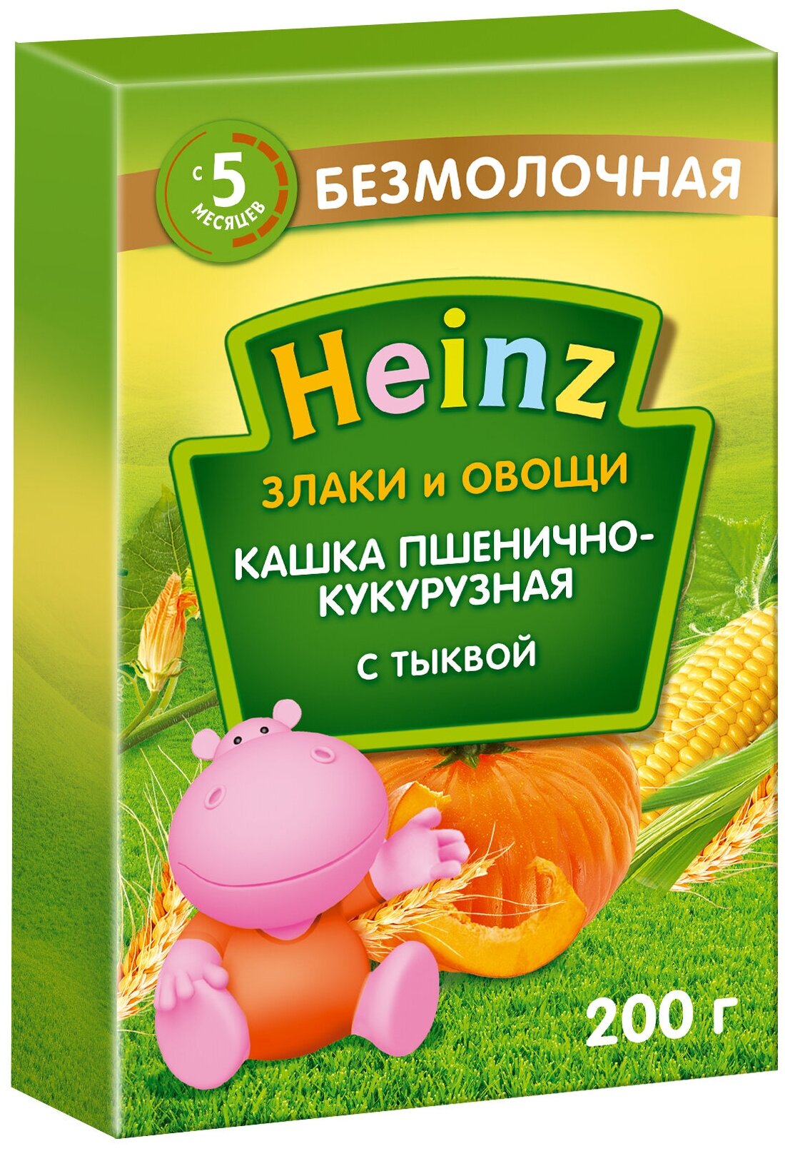 Каша Heinz безмолочная Злаки и овощи пшенично-кукурузная с тыквой 200 г (75980232)