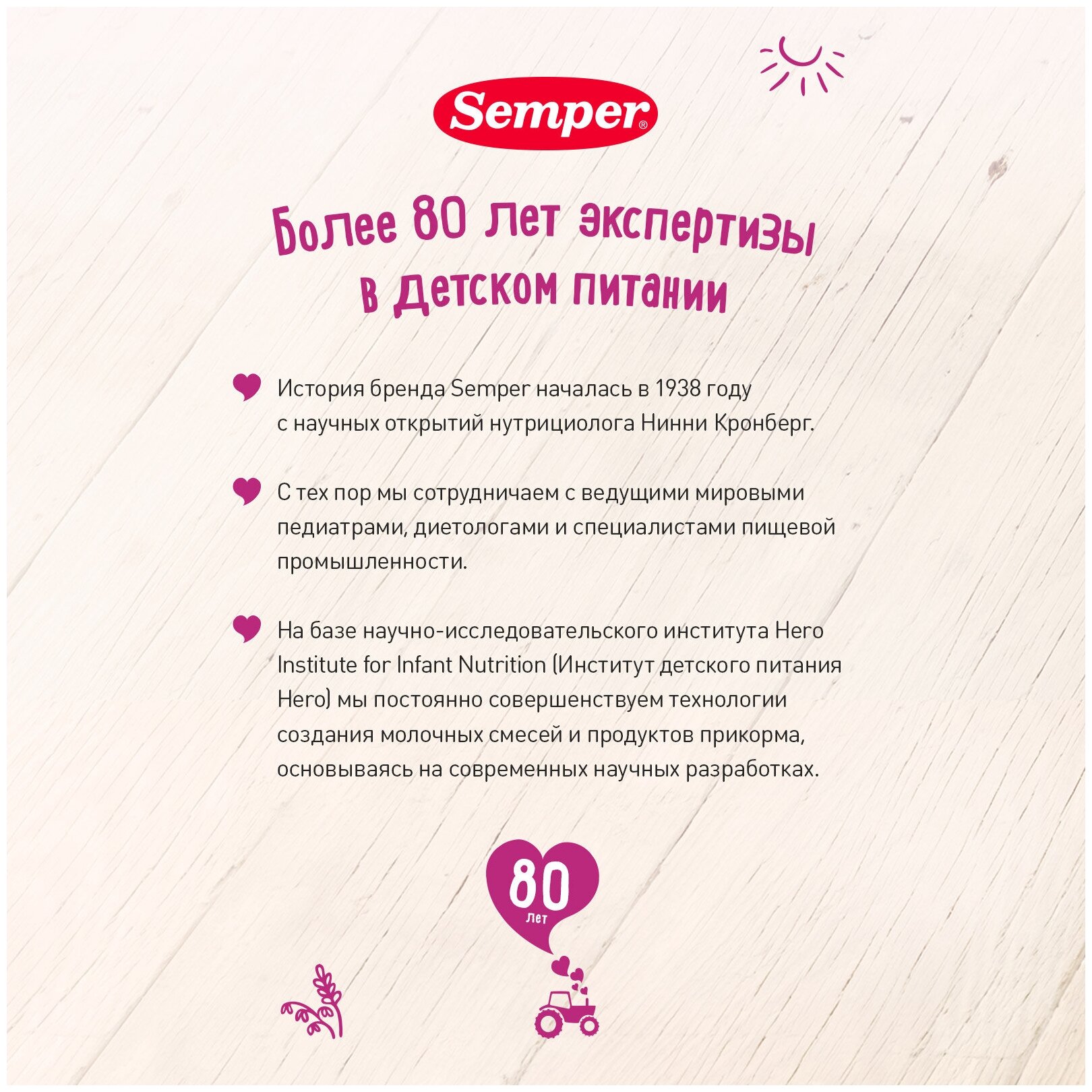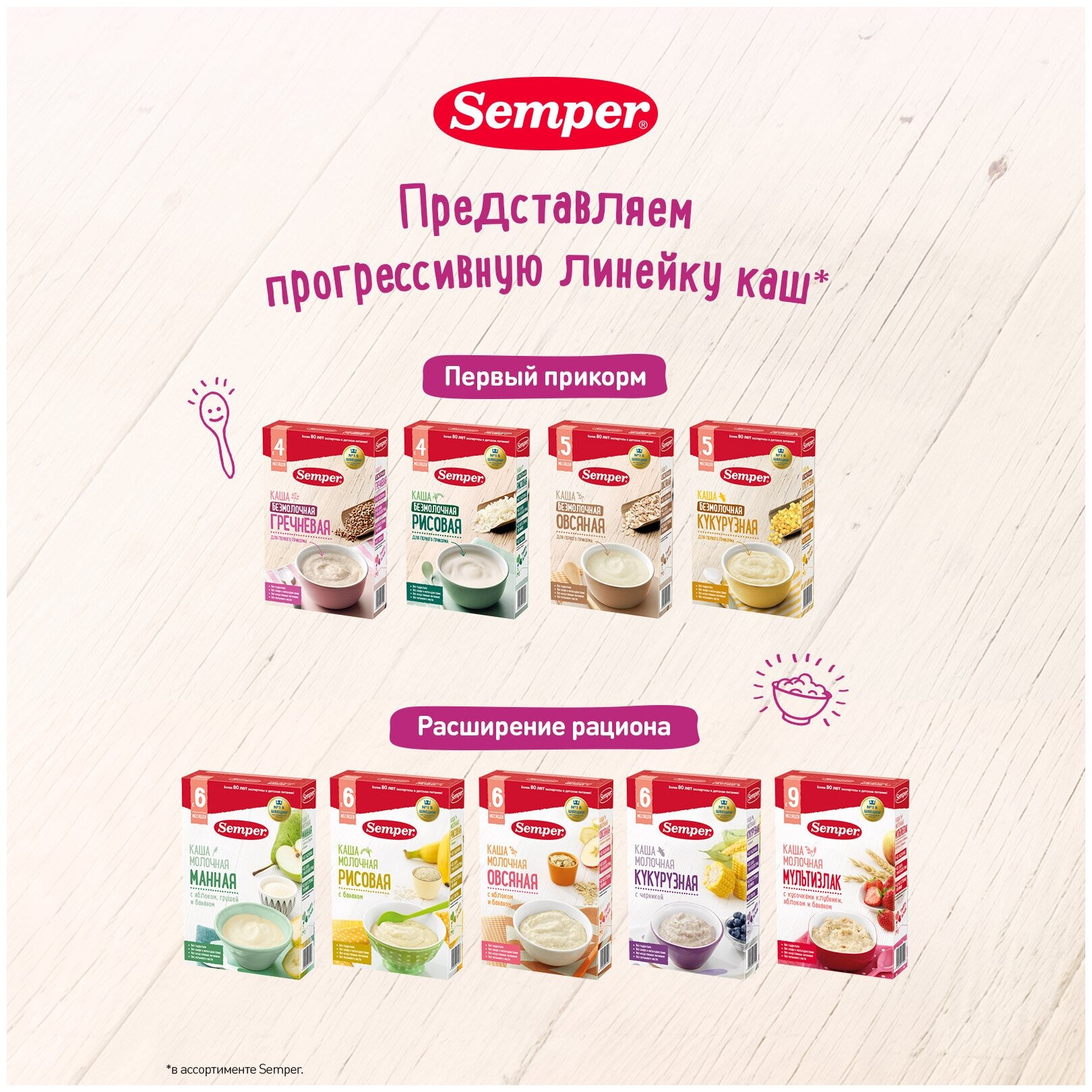 Гречка - гипоаллергенный злак, поэтому гречневая безмолочная каша Semper прекрасно подойдет в качестве безопасного первого прикорма для малышей с 4 месяцев.