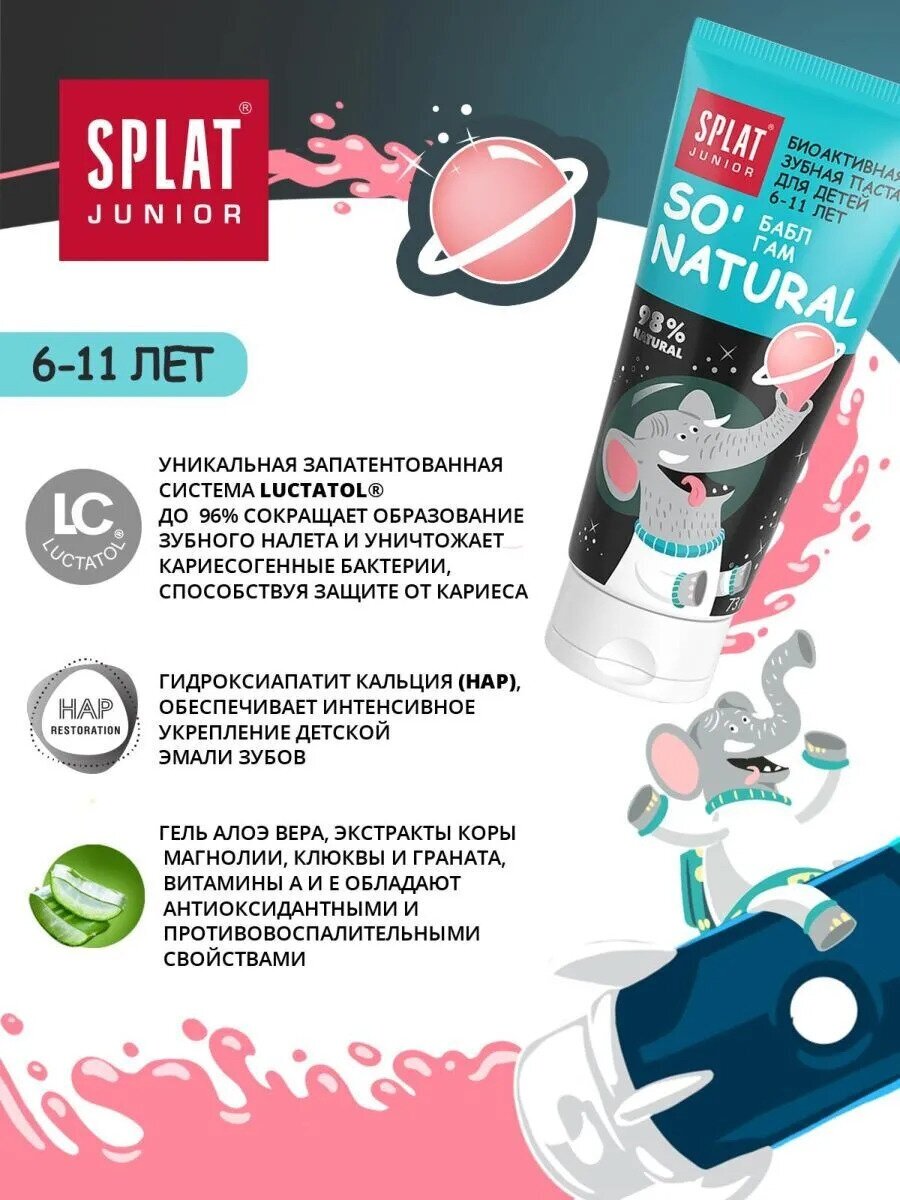 Зубная паста Splat Junior детская от 6 до 11 лет Бабл Гам 73 г (1007-02-01)
