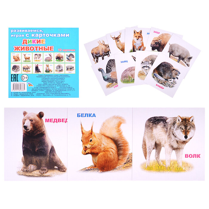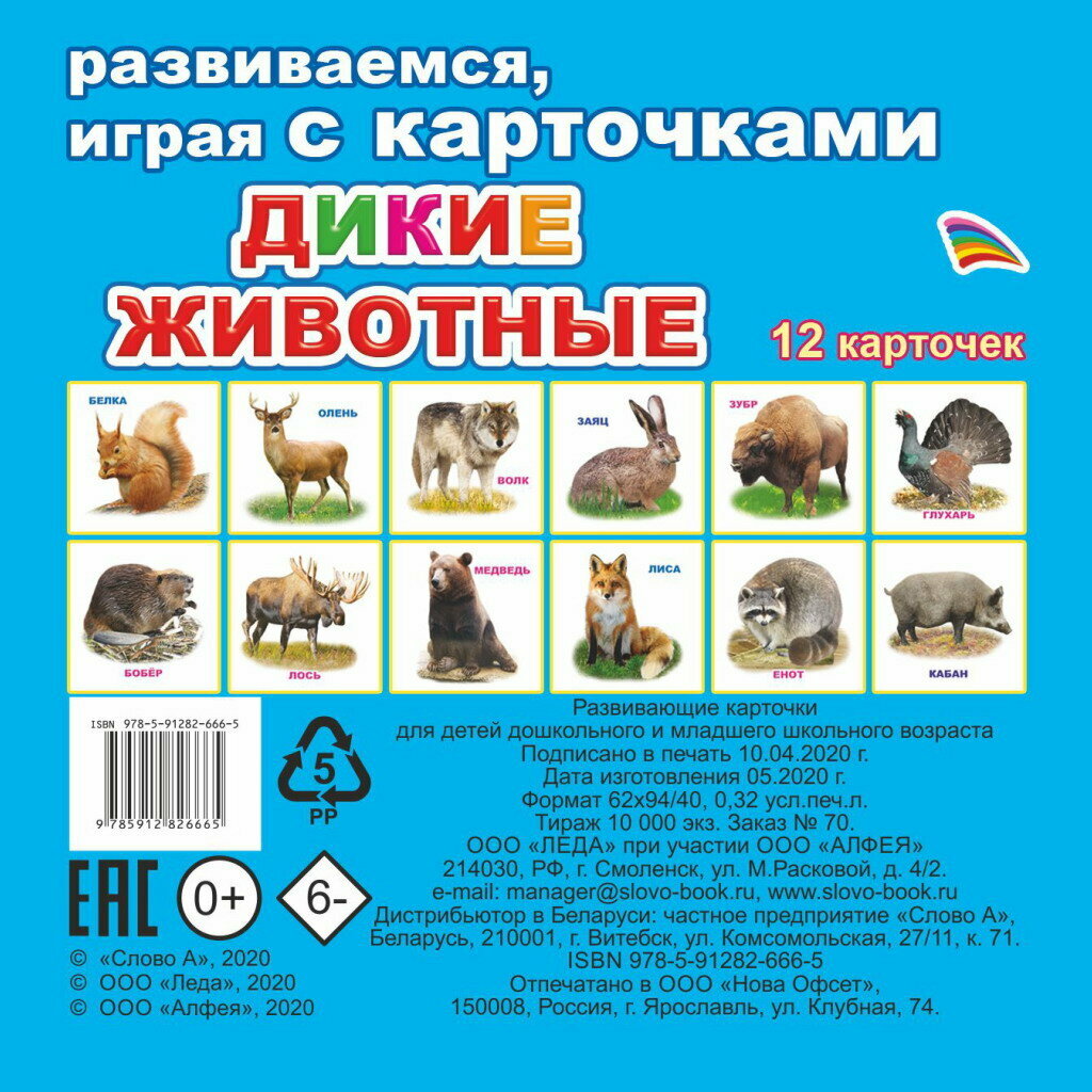 Карточки обучающие изд. Алфея Дикие животные 0+ Издательство Алфея (978-5-91282-666-5)