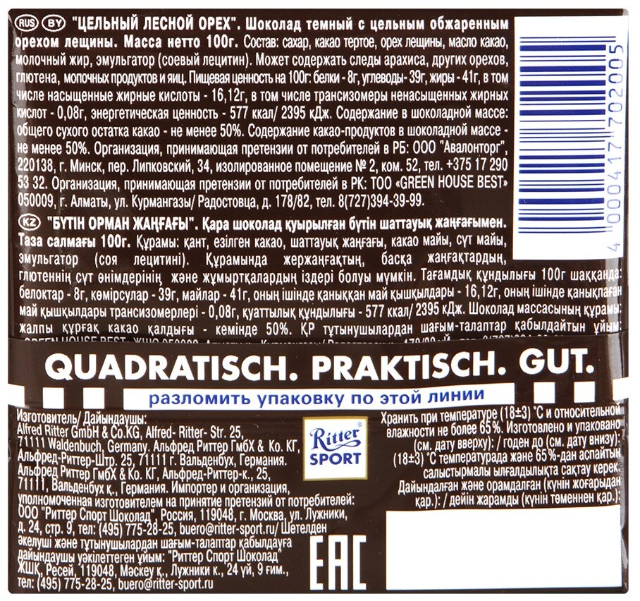 - Обзор шоколада Ritter SPORT EXTRA NUT Цельный лесной орех