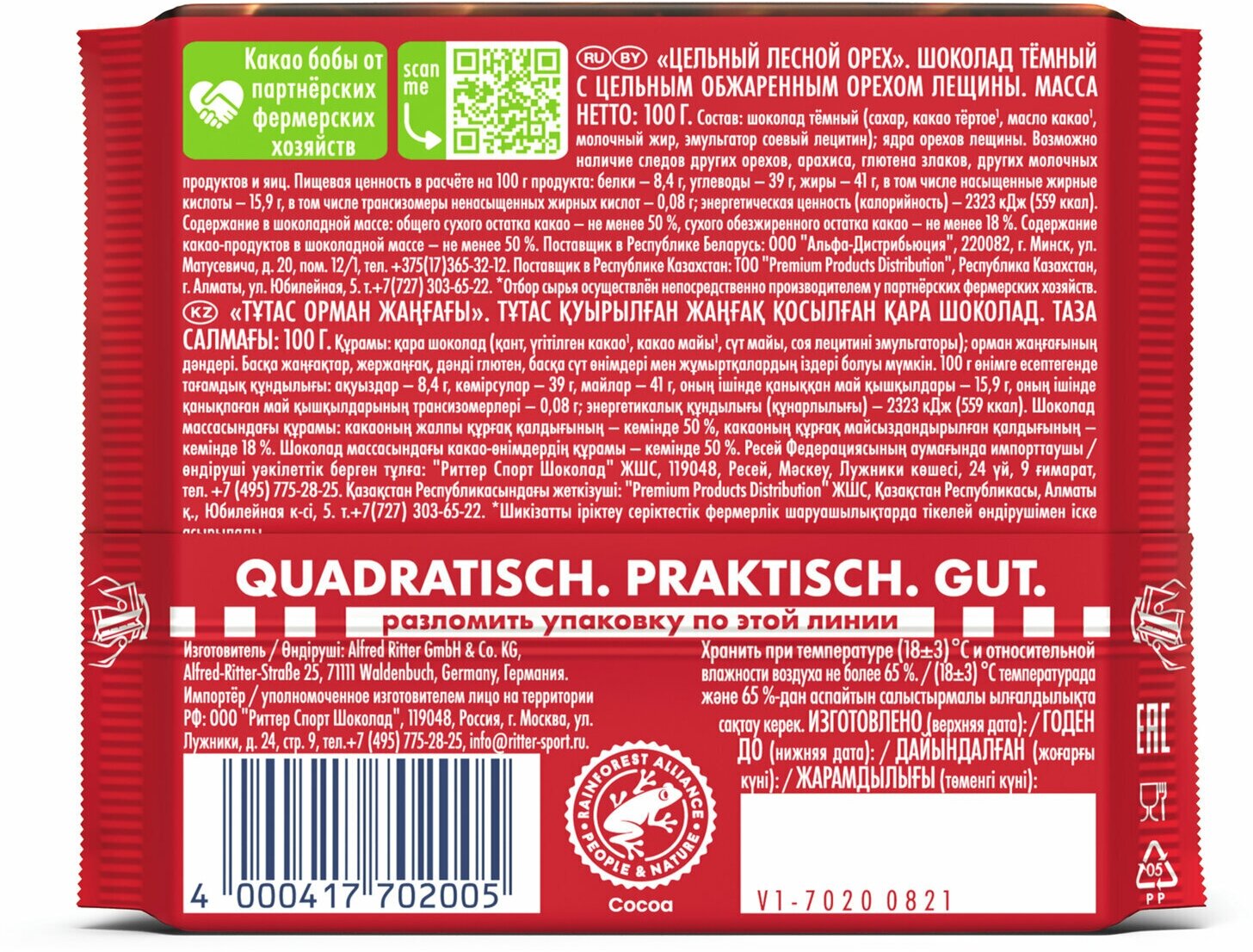 - Ritter Sport Шоколад темный с цельным обжаренным орехом