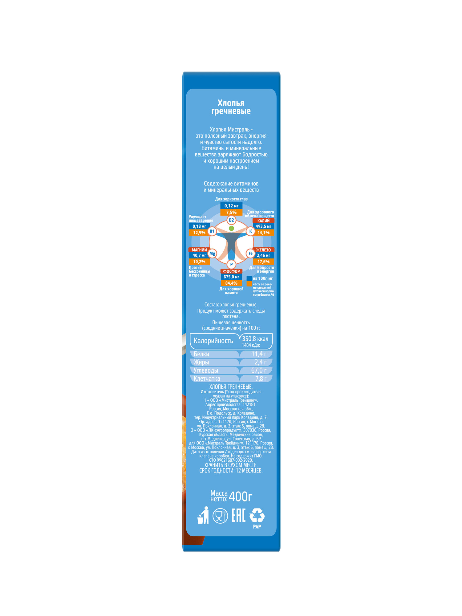Сервис сравнения цен СкидкаГИД предлагает сравнить цены на товар «Хлопья Мистраль Гречневые 400 г (66114)»