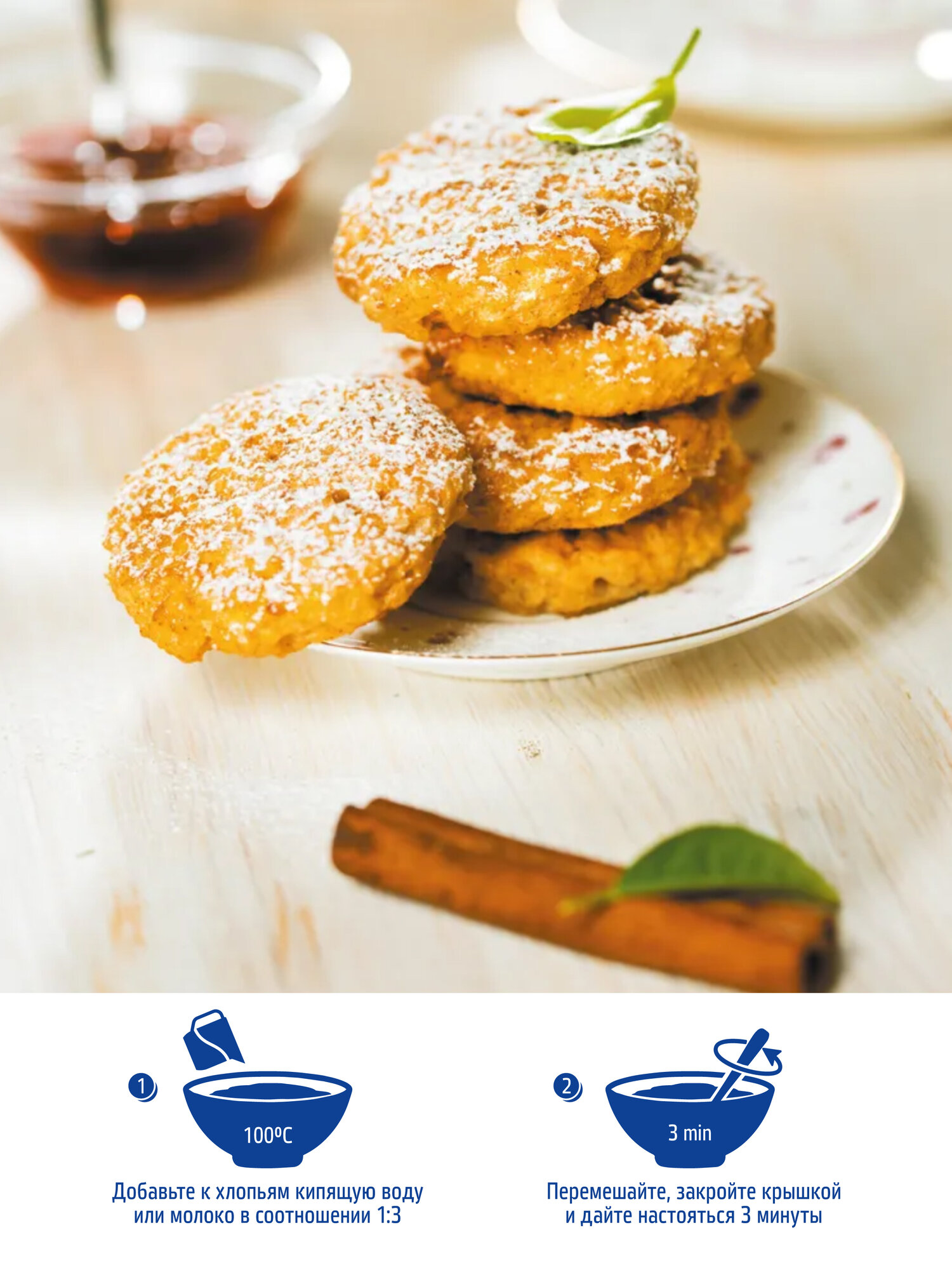 Способ приготовления: Залейте хлопья в соотношении 1:2. Перемешайте, накройте крышкой и дайте настояться 3 минуты.
