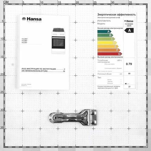 Плита электрическая Hansa белый, отдельностоящая, поверхность стеклокерамика, электрических конфорок: 4, механическое управление, объём духовки 68л