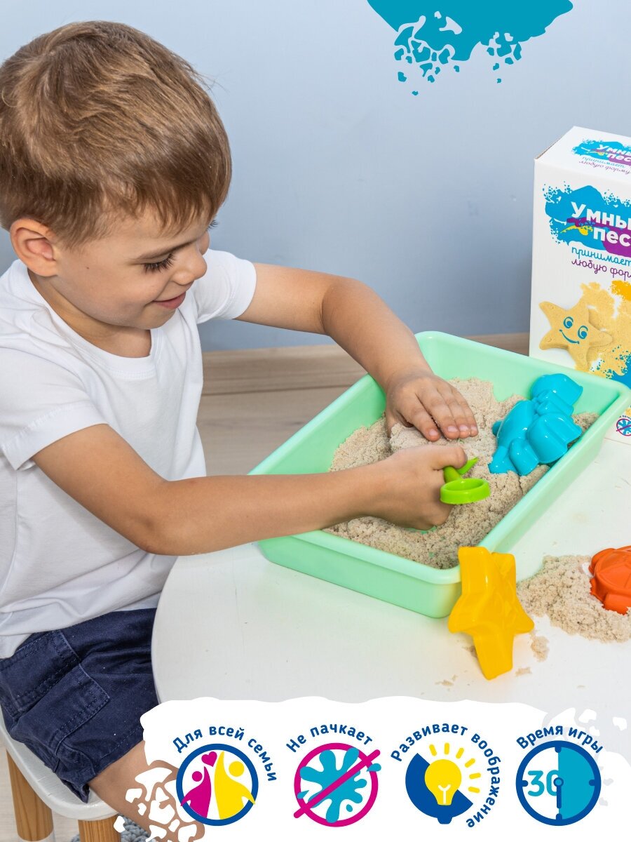 | Состав набора | 1 кг песка, пластмассовая песочница, 3 формочки (черепаха, краб, звезда), лопатка |