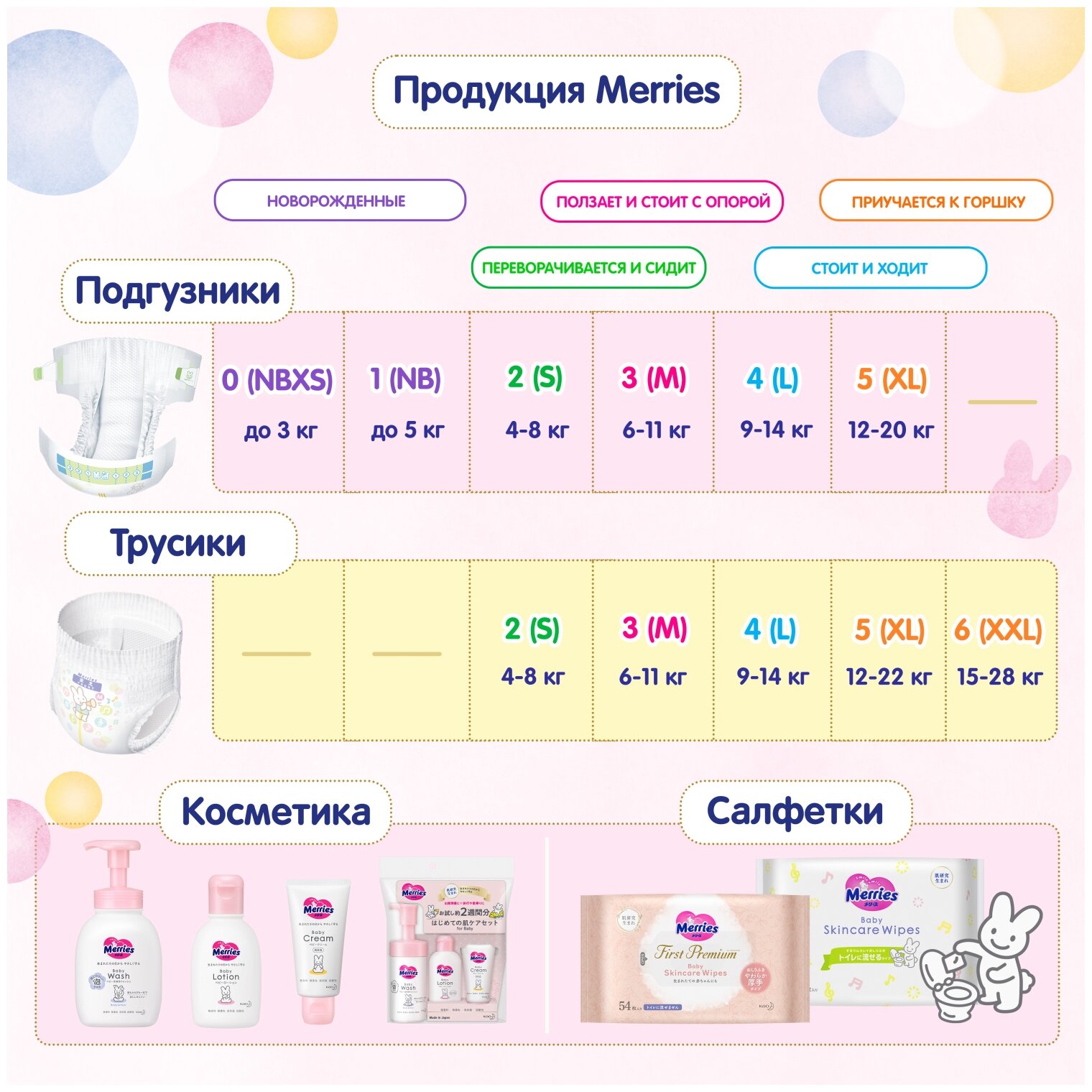 - Симпатичный дизайн с зайкой Merries подарит малышу хорошее настроение.