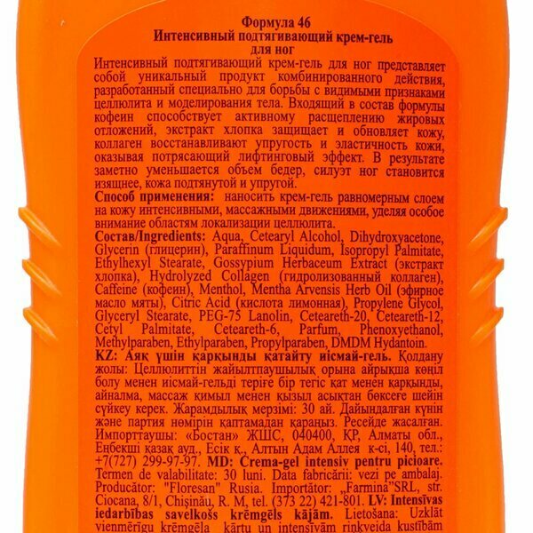 - Интенсивный подтягивающий крем-гель для ног представляет собой уникальный продукт комбинированного действия, разработанный специально для борьбы с видимыми признаками целлюлита и моделирования тела.