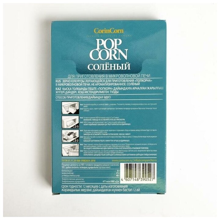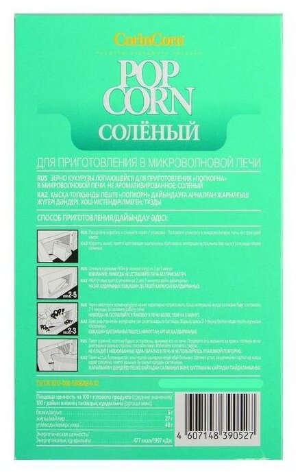 Попкорн для приготовления в микроволновой печи –потрясающе удобный продукт для домашнего приготовления попкорна. При изготовлении попкорна используются только натуральные ингредиенты и отборное зерно лучших сортов кукурузы. БЕЗ ГМО.