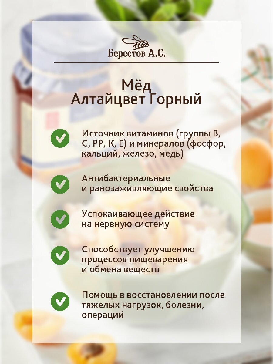 Мед Берестов А.С. натуральный горный 500 г (4214)