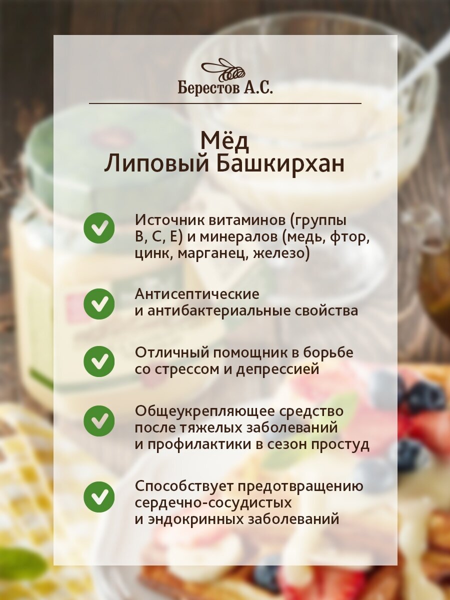 Сервис сравнения цен СкидкаГИД предлагает сравнить цены на товар «Мед Берестов А.С. натуральный Башкирхан Липовый Нежный 500 г (4266)»
