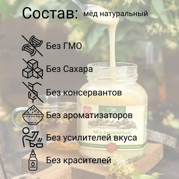 | Состав | мед натуральный цветочный монофлорный липовый |
