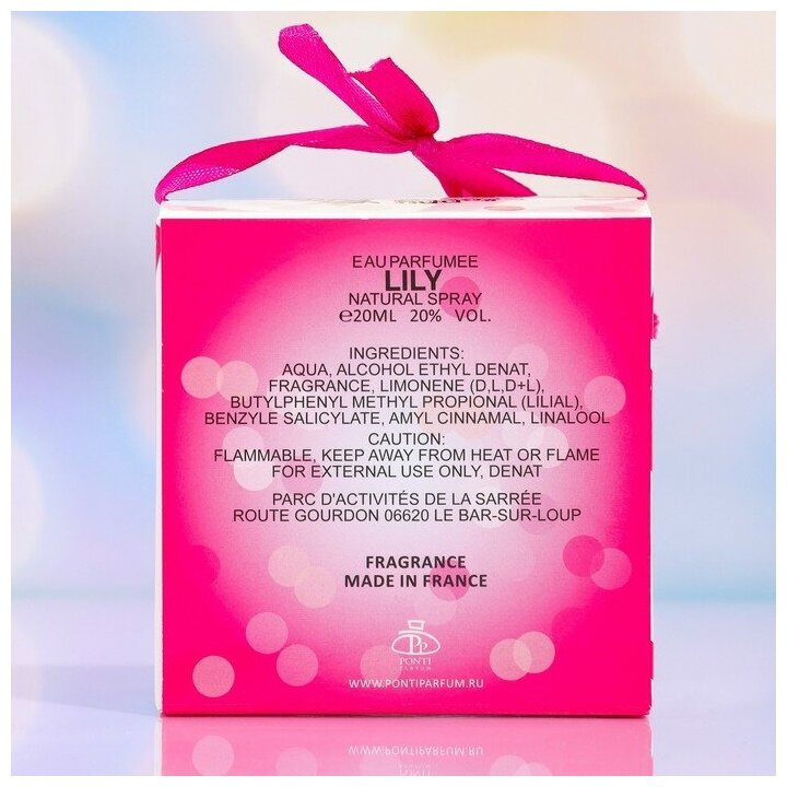 | Состав | вода 72%, этиловый спирт 22%, парфюмерная композиция 6% |