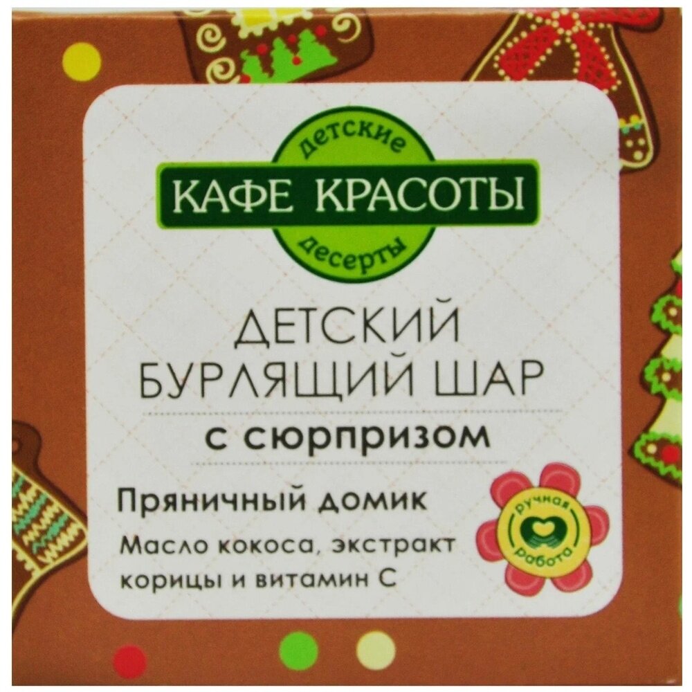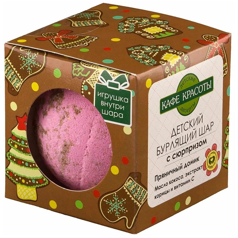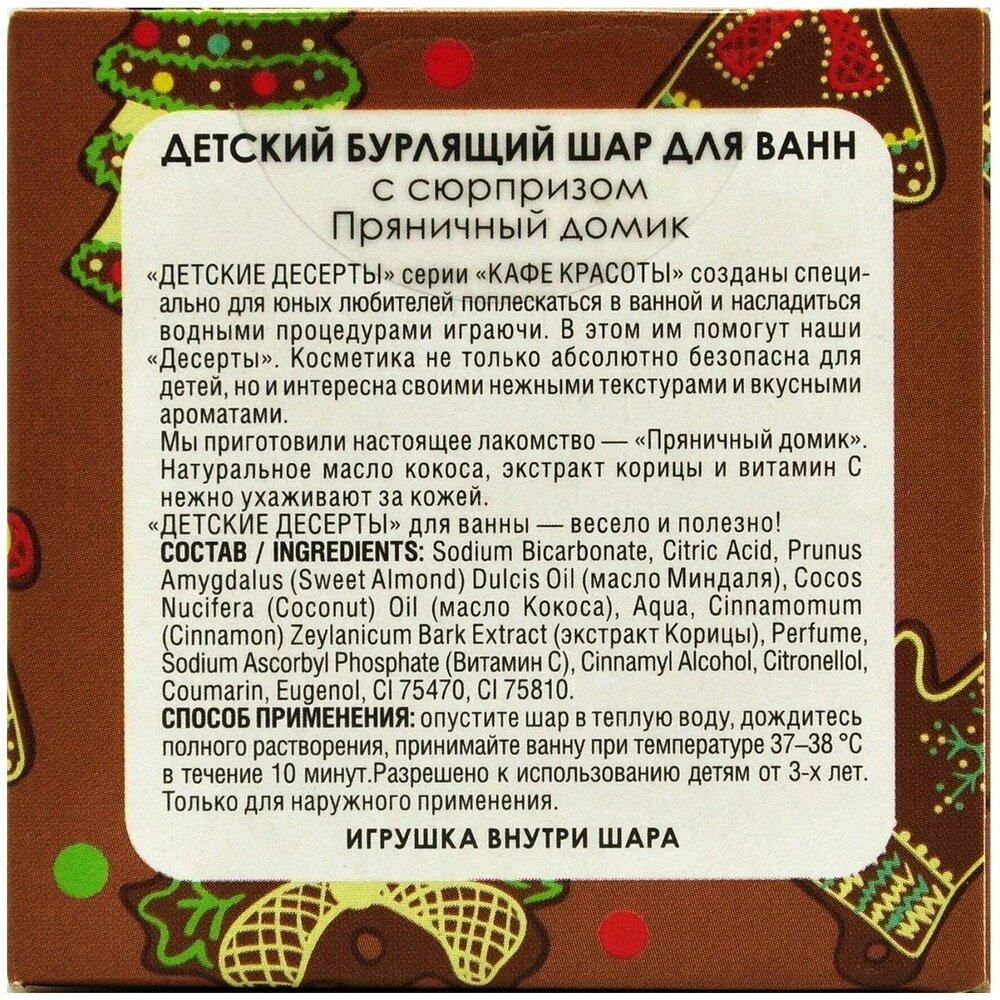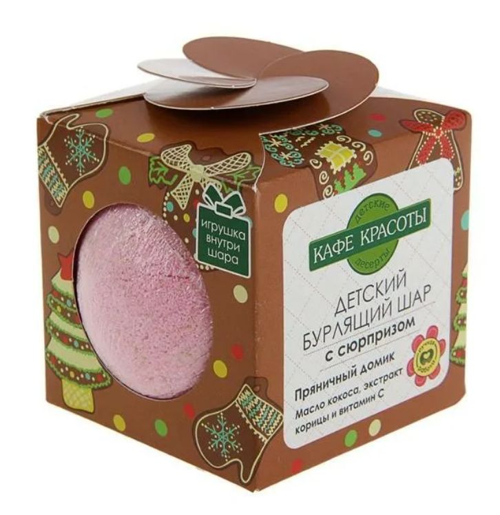 | Полное наименование | Кафе Красоты Бурлящий шар для ванн детский с сюрпризом Пряничный домик 120 г |