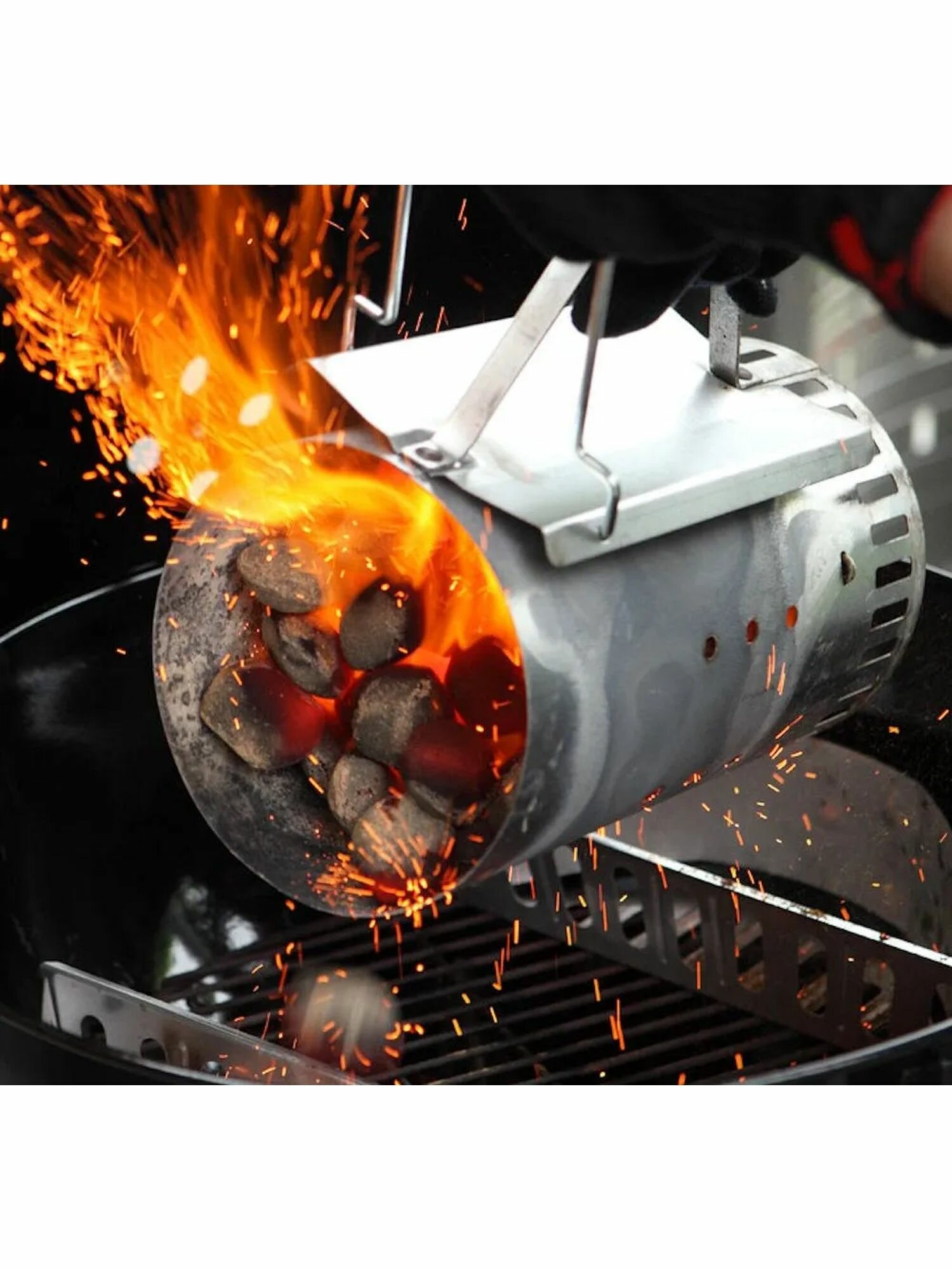 Стартер для розжига угля Weber поможет Вам легко и быстро подготовить горячие угли для готовки на гриле. Просто набейте нижний отдел стартера бумагой, наполните верхний отдел углем и подожгите бумагу. Решетка конической формы обеспечит большую площадь воздействия пламени, что ускоряет горение угля. Рукоятка из термостойкого материала и раскладная проволочная ручка обеспечивают комфортное и безопасное использование стартера.