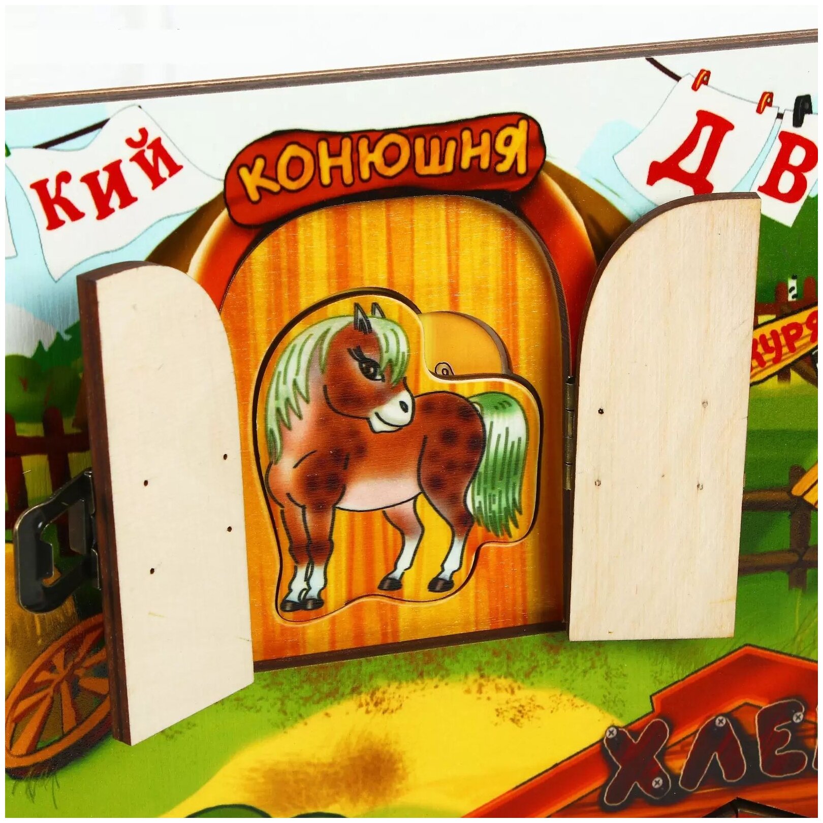 Бизиборд Деревенский двор и развивающая рамка-вкладыш Кто где живет от Нескучные игры
