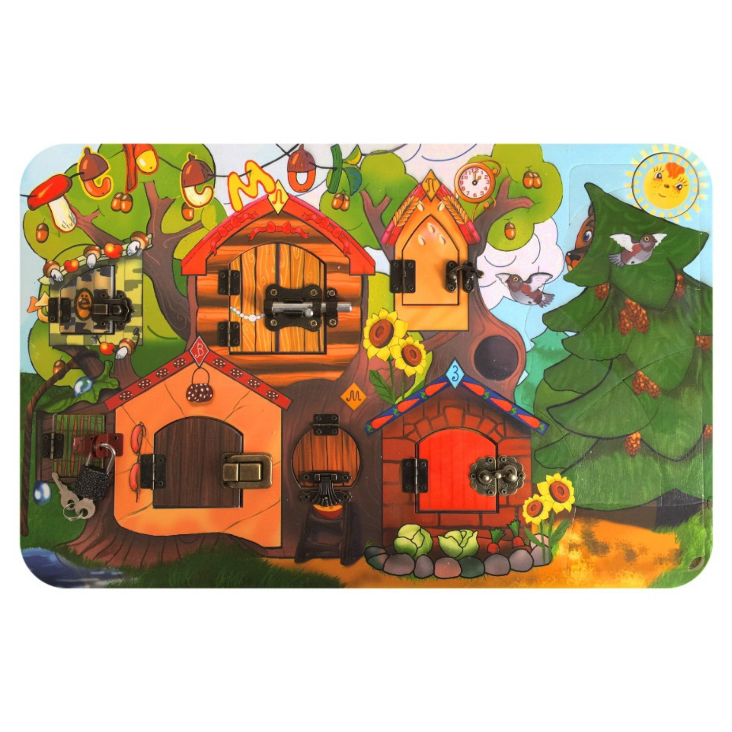 Игрушка из дерева Нескучные игры Замочки Теремок ( Busy Board) (7819)