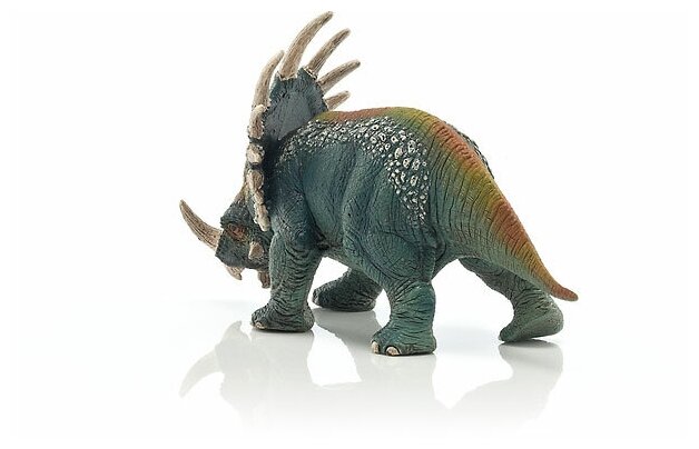 Стиракозавр – динозавр, достигавший в длину 5,5 м и имевший невероятно внушительный череп с «колючим воротником» и рогом. Рог на носу динозавра мог доходить до 50 см в длину. Стиракозавр обитал во времена Мелового периода. Несмотря на то, что «воротник» динозавра выглядит очень прочно, предполагается, что он был слишком тонким для действенной обороны.
