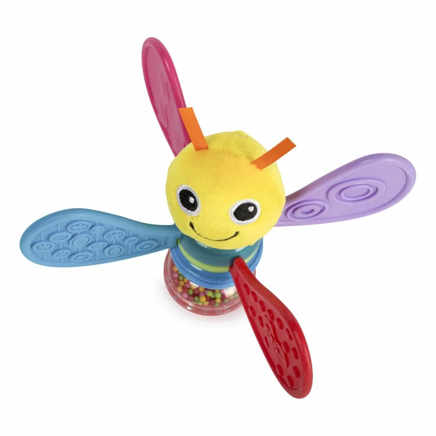Светлячок Фредди – это не просто погремушка, а настоящая многофунциональная игрушка, которая с первых минут понравится малышу. Яркая и красочная погремушка изготовлена из ткани и пластика высшего качества, которые абсолютно безопасны для малыша. Голова и усики выполнены из приятной на ощупь ткани. Четыре разноцветных крылышка-прорезывателя для зубов вращаются. В нижней части игрушки находится погремушка с множеством разноцветных бусинок, которые привлекут внимание малыша.