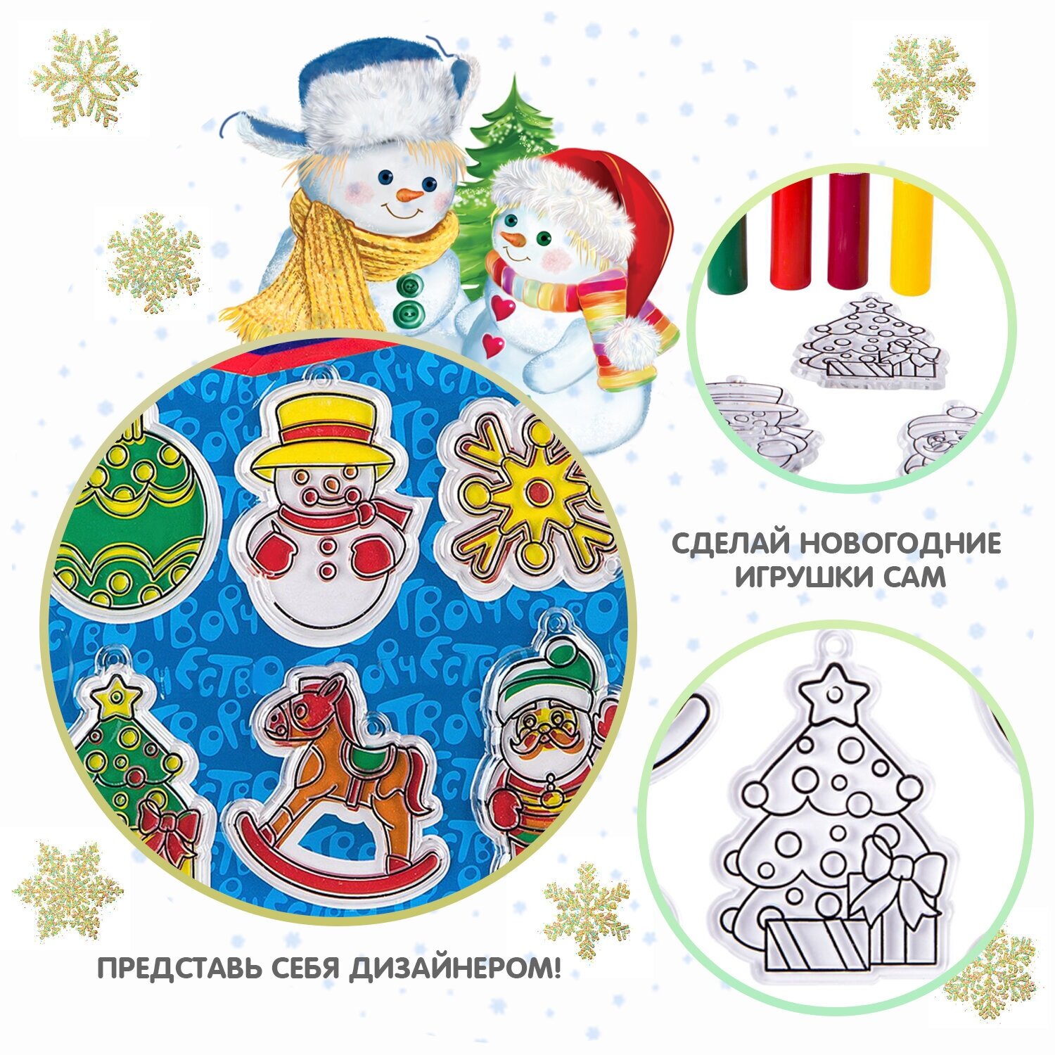 - РАСКРАШИВАЕМ НАБОР НОВОГОДНИХ УКРАШЕНИЙ! Краски и формы для детского творчества!