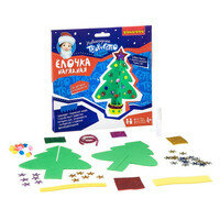 | Состав набора | заготовки для ёлочки и подставки к ней; набор блестящих наклеек; аксессуары для украшения; синельная проволока; клей ПВА |