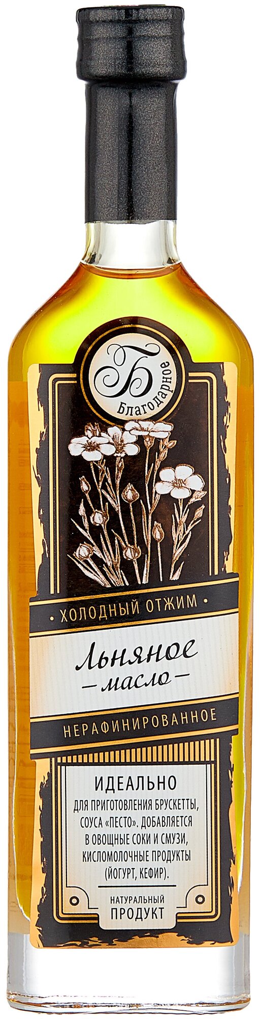 Льняное масло составляет около 50 % состава зерна. Технология холодного отжима позволяет сохранить бесценные свойства, а их действительно много. Его используют в химической отрасли (в изготовлении красок, олифы, линолеума, лаков), в косметологии, пищевой отрасли, народной медицине. Хорошее масло прозрачное, слегка горчит, а цвет меняется от золотого до коричневого. В составе, определяющем его ценность, содержатся: лигнины (фитогормоны); витамины А, К, Е, F — ненасыщенные жирные кислоты, которые в инструкции указывают, как ПНЖК Омега-3; витамины группы В (включая фолиевую кислоту, называемую В9). Благодаря последнему компоненту масло превосходит по ценности рыбий жир.