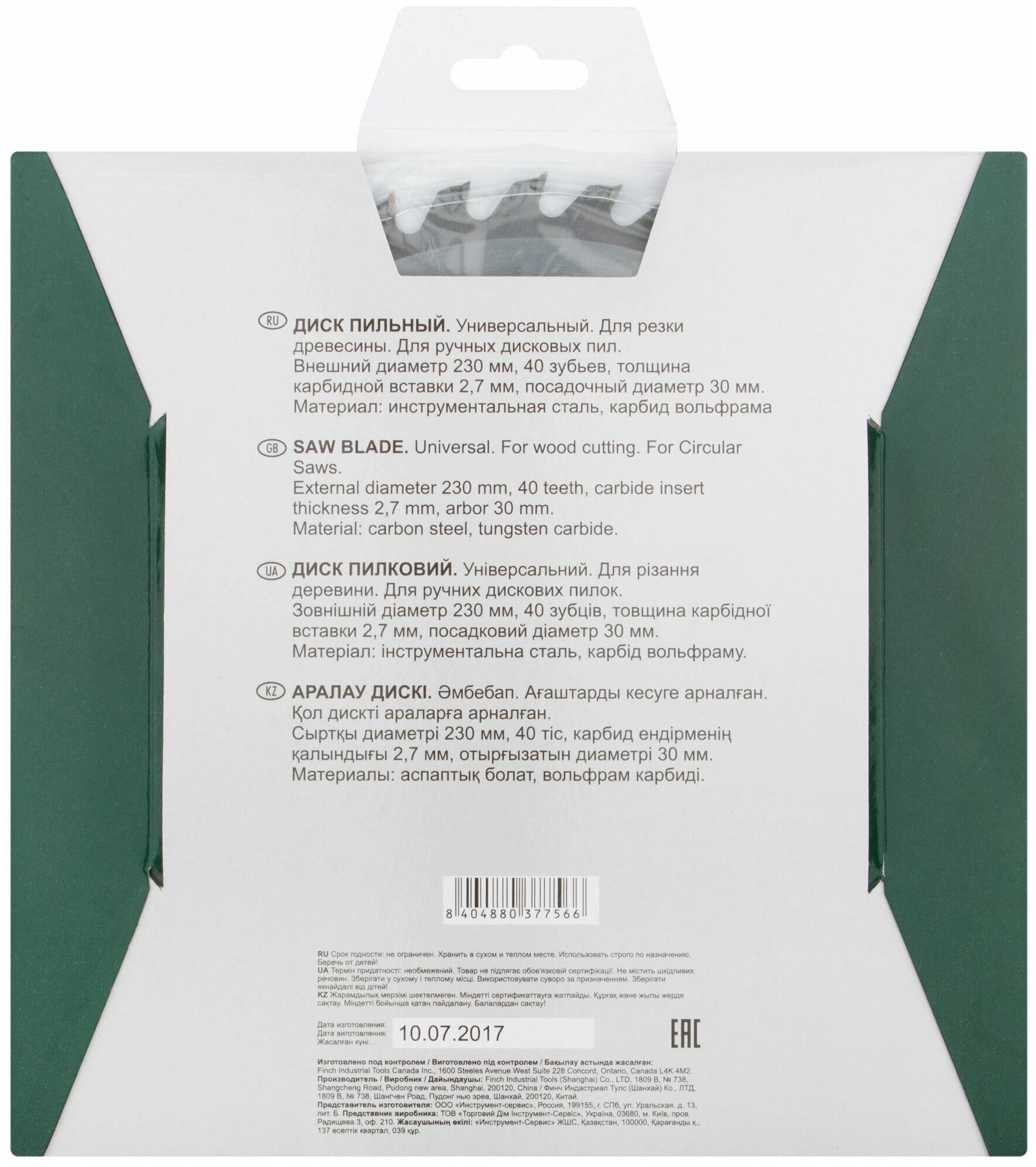 Диск пильный по дереву 230x30 мм FIT (40 T)