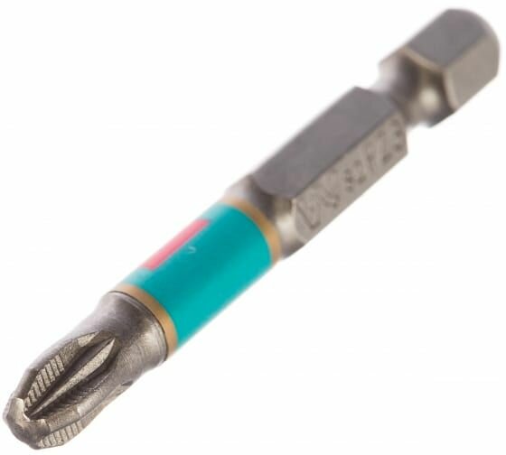 Элемент изготовлен из высококачественной усиленной стали марки S2. Модель длиной 50 мм отличается износоустойчивостью, мало подвержена перегреванию, деформации и истиранию. Необходима для кратковременного контакта с саморезами, винтами, шурупами, оснащенными крестовой насечкой. Во время работы рекомендуется соблюдать технику безопасности.