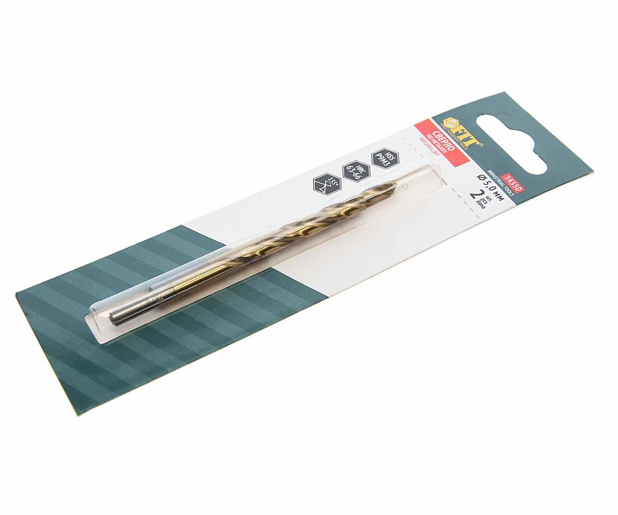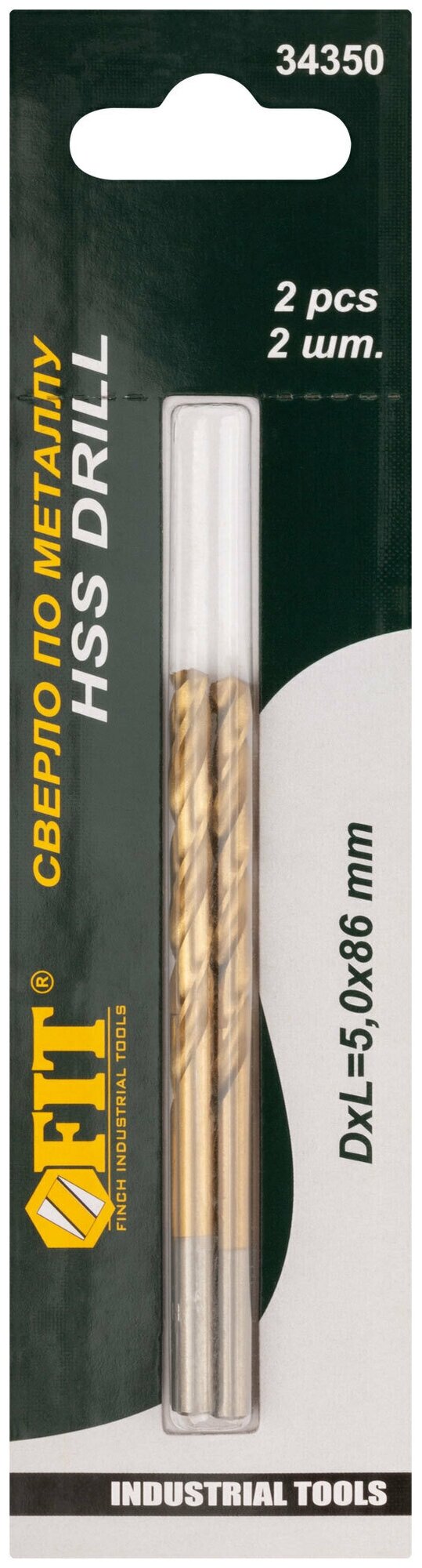 Сверло по металлу 5.0 мм FIT (сталь HSS, титановое покрытие, полированное, 2 шт. в блистере)