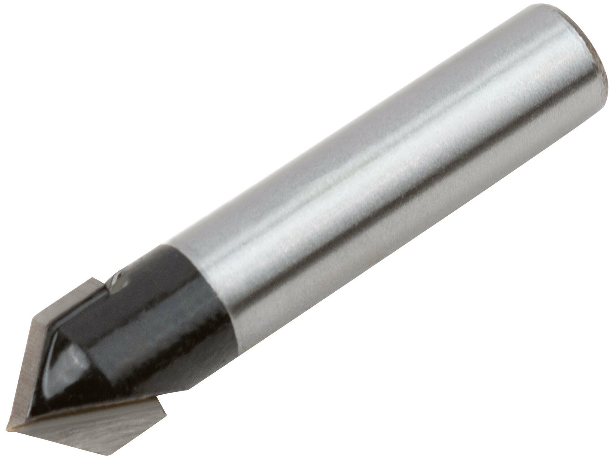Используется для работ по дереву. Для фрезерования пазов. Угол при вершине 90°. Цилиндрический хвостовик 8 мм. Материал: инструментальная сталь с твердосплавными режущими вставками. Упаковка: двойной блистер.