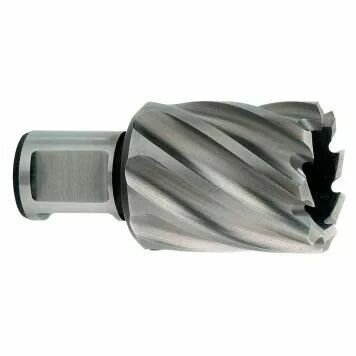 Фреза НSS Metabo предназначена для сверлильных станков на магните. Подходит к станкам Metabo MAG 832, MAG 50, MAG 32. Применяется при фрезеровании отверстий. Изготовлена из быстрорежущей стали. Фреза имеет Weldon-хвостовик диаметром 19 мм. Зажатие режущего инструмента осуществляется в специальном патроне винтом, который упирается в лыску на фрезе. Данное закрепление инструмента обеспечивает высокую жесткость.