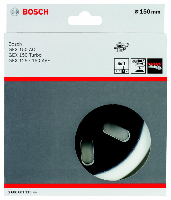 | Прочие особенности и свойства | Опорная тарелка Bosch 2608601115 улучшает вид поверхности после шлифовки закруглений и кромок. Особая форма кромок со сниженной жесткостью улучшает качество обработки закруглений и граней. Вспененная основа хорошо повторяет контуры поверхности, что улучшает качество шлифования. |