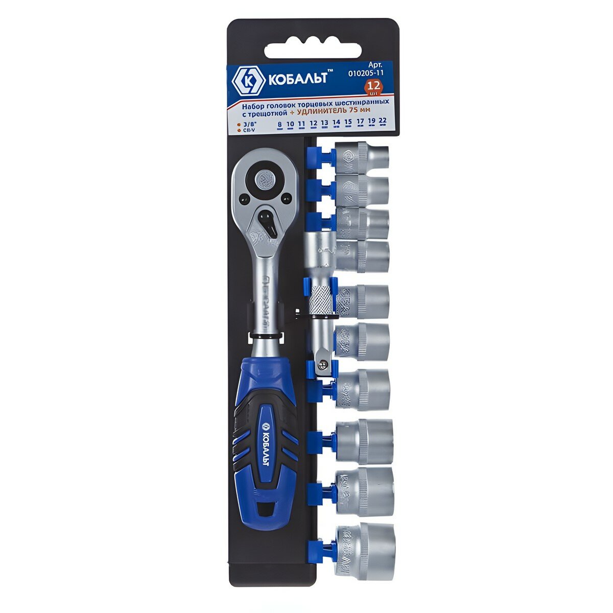 Набор головок торцевых с трещоткой 3/8 КОБАЛЬТ применяется для отвинчивания и завинчивания шестигранных соединений. Набор содержит десять торцевых головок, от малого до среднего размера, и одна рукоятка, тем самым экономится время на поиск разных инструментов.