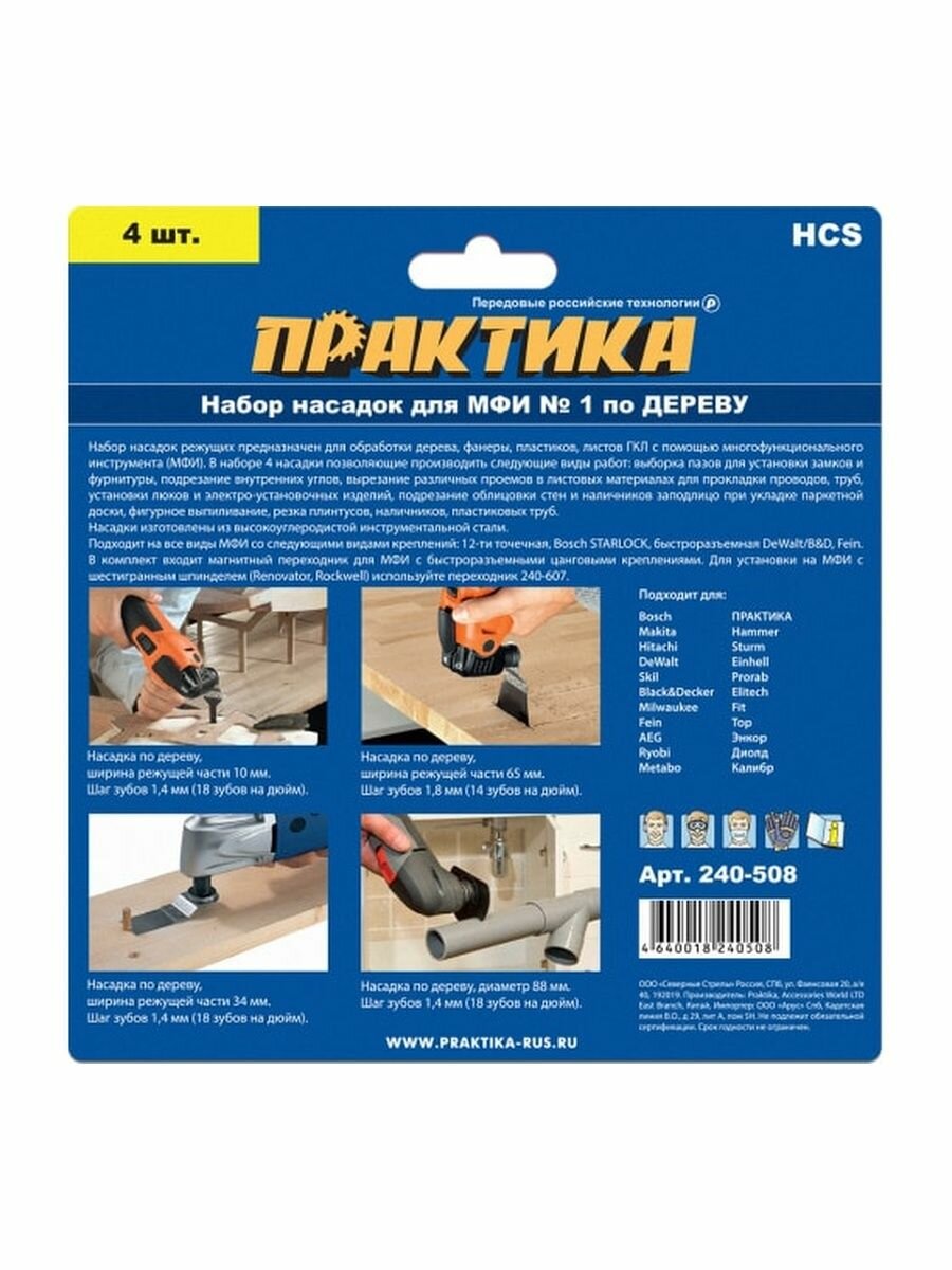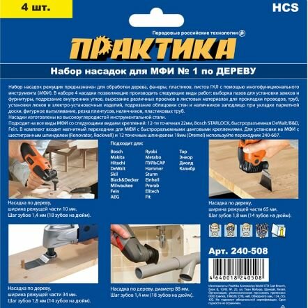 Набор насадок для МФИ по дереву ПРАКТИКА 240-508